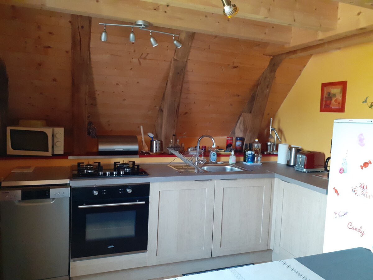 Alojamiento con todas las comodidades tranquilo, recién reformado. Aire acondicionado. A 20 minutos de la Bourboule y a 25 del Mont Dore. Cerca del Parque Fenestre y de Vulcania. Cocina totalmente equipada abierta al salón con sofá cama y TV. Arriba, 1 habitación abierta con cama de 160 + 1 habitación cerrada con 2 camas de 90. La ropa de cama está incluida. Ducha italiana. Se proporcionan toallas, así como gel de ducha y champú. No se admiten animales