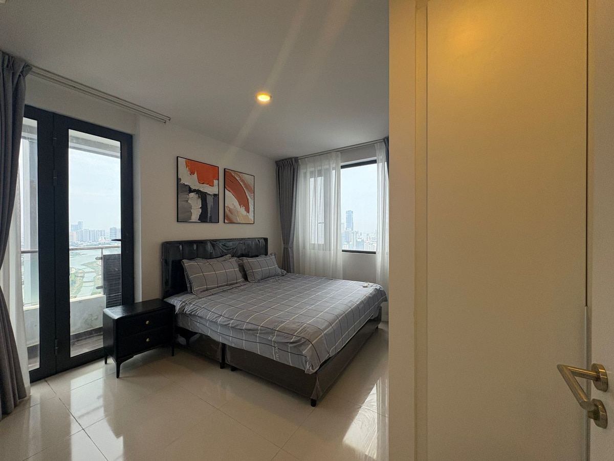 Amplio apartamento ubicado en el corazón de Phnom Penh, frente al casino Naga World, bar, tienda y centro comercial a pocos pasos. Buena zona + Buena ubicación Apartamento adecuado para viajeros de negocios y parejas El apartamento se encuentra en el piso alto con una ciudad asombrosa y hermosas vistas. Totalmente amueblado con muebles y accesorios encantadores Aire acondicionado completo WIFI de buena velocidad Adecuado para todos los viajeros. Centros comerciales dentro del edificio Con servicio doméstico diario