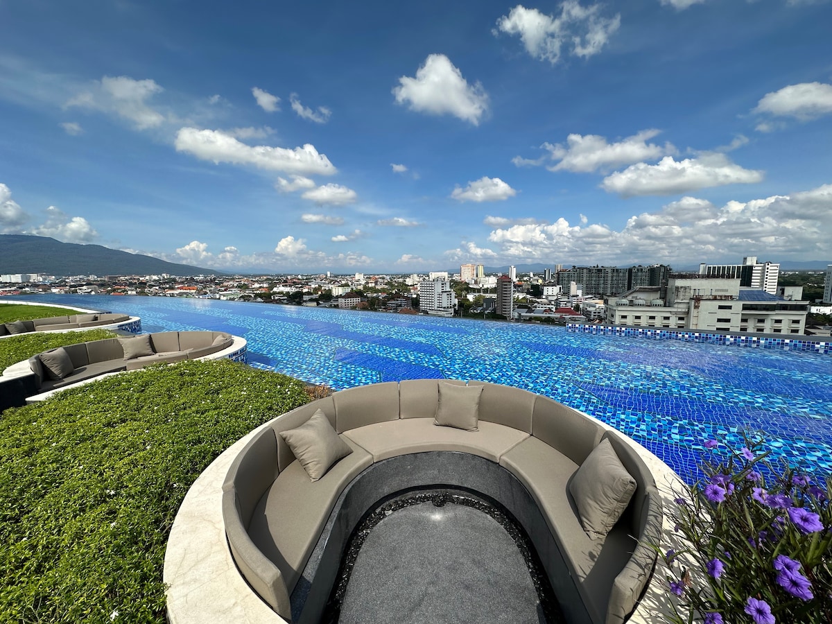 Requisitos de reservación: La piscina del edificio de condominios A no estará disponible del 29 de septiembre al 8 de octubre de 2025, y el gimnasio se puede usar.Pero la piscina B está abierta a todos los huéspedes.La piscina B es un poco más pequeña que la piscina en el edificio A, así que ten cuidado si eres muy consciente de la experiencia de la piscina. El apartamento es de 55 metros cuadrados, es uno grande de lujo, no un astra de otros 29 metros cuadrados, por lo que hay una mejor experiencia de vida.Proporcionaremos consultas turísticas gratuitas de Chiang Mai a nuestros huéspedes. La habitación ofrece un colchón de cama tamaño queen que admite hasta 3 personas para vivir. Ubicado en la famosa Chang Klan Road de Chiang Mai, a 5 minutos a pie del Bazar nocturno de Chang Klan, junto al Shangri-la Hotel, este apartamento es un lugar tranquilo.La piscina del jardín en el último piso del apartamento ofrece vistas panorámicas de toda la antigua ciudad de Chiang Mai y de la montaña Suthep. Los alrededores tienen de todo: supermercados, restaurantes, bares de aperitivos especializados, tiendas de masajes, bancos, 711 tiendas de conveniencia, tiendas de alquiler de coches. El apartamento está a 15 minutos a pie de las siguientes atracciones: - Bazar nocturno a 5 minutos. Puerta Tha Phae a 10 minutos. Barrio antiguo de Chiang Mai a 10 minutos Mercado nocturno de domingo a 10 minutos. Mercado de Warorot a 12 minutos Arroz con pierna de cerdo famoso 2 min Wat Chedi Luang a 15 minutos. Vamos a relajarnos en el salón de masajes a 3 minutos Masaje para mujeres por ex prisioneros 15 minutos River Side (el bar más popular de Chiang Mai) a 15 minutos. Hotel Imperial Meiping (donde murió Deng Lijun) 5 minutos Hotel Le Méridien (lugar de la sesión de fotos de "Lost in Thailand") a 4 minutos Acceso del huésped: Piscina infinita gratuita en la azotea Fitness gratis
