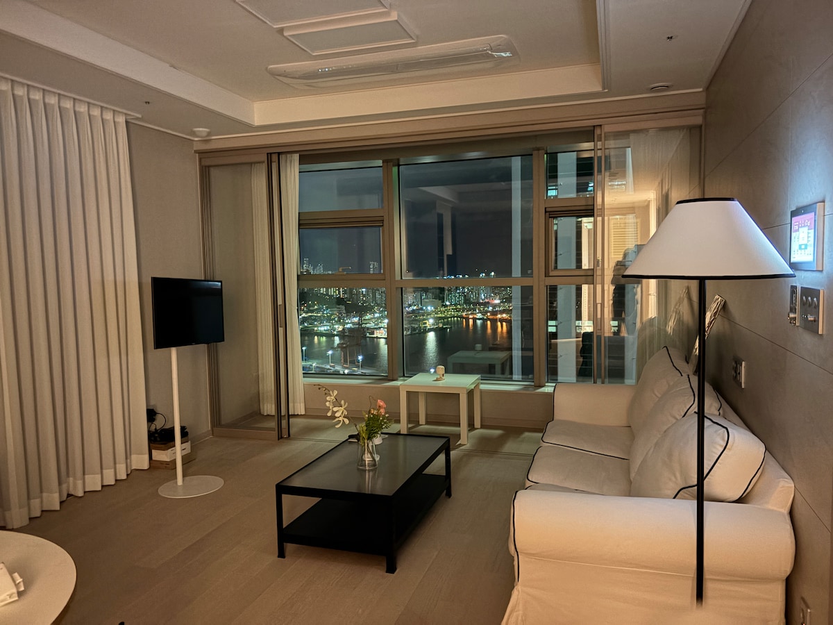 ¡Nuevo en Haeundae! Jacuzzi interior gratuito # 61 pyeong 2 baños 2 salas de estar 19 kg secadora # 38 piso Infinity Pool & Sauna