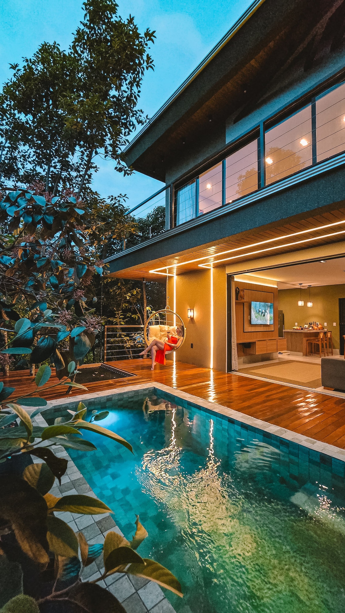WoodHouse Entre la acogedora madera y el agua que abraza, un refugio donde la comodidad se encuentra con la naturaleza Aspectos más destacados de la experiencia: 🌿 Piscina de 35°, para inmersiones perfectas en cualquier época del año. 🌿Sala de estar con aire acondicionado y suite principal para tu total comodidad. 🌿Balcón cubierto con mesa de comedor integrada en el jardín. 🌿Cocina completa y funcional. 🌿Lavandería con lavadora y secadora. Ubicado estratégicamente en un lugar tranquilo y silencioso, a solo 1,5 km de la avenida principal.