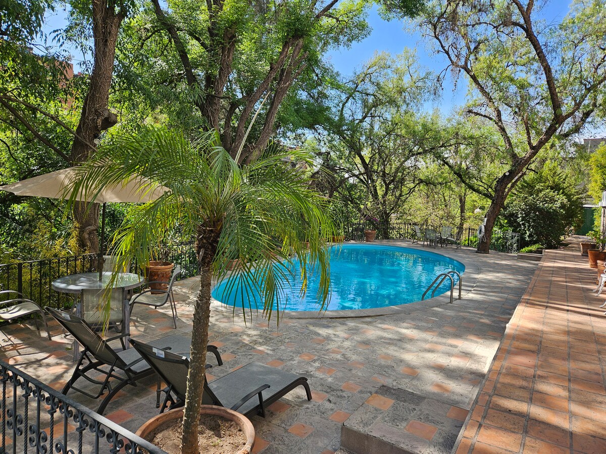 Magníficas vistas y ubicación. Justo encima del Parque Juárez y abajo del mirador. A unas manzanas de la plaza principal. Nuestra casa se encuentra detrás y encima de otra propiedad, lo que permite un entorno tranquilo y privado, mientras disfrutas de impresionantes vistas panorámicas del centro de San Miguel, sus iglesias y la lejana campiña. Los cuatro niveles de esta propiedad permiten una definición clara del espacio, pero a la vez están en terraza entre sí, creando una sensación de amplitud mientras se beneficia de la exuberante vegetación de los árboles circundantes y las paredes cubiertas de enredaderas. Múltiples terrazas y fuentes marcan la pauta para un ambiente relajante en los interiores limpios y luminosos que recuerdan al Mediterráneo. En el nivel principal encontrarás la sala de estar, el comedor y la cocina totalmente equipada con sistema de purificación de agua para toda la casa, así como un balcón y el dormitorio de invitados con baño privado. Debajo hay un jardín privado con un estudio que proporciona el ambiente perfecto para la creación artística. El dormitorio principal, ubicado arriba, es increíble y es amplio y abierto. La cama tamaño king de ubicación central da a la vista, las puertas francesas y el balcón. El baño en suite tiene una gran ducha y un tragaluz en la parte superior. Justo al lado del dormitorio hay una oficina en suite que ofrece internet y wifi en toda la casa y con vistas a la Capilla de la Santa Cruz de Chorro del siglo XVII, el segundo escenario más histórico de San Miguel de Allende. Directamente encima del dormitorio principal encontrarás la vista más impresionante de San Miguel desde la terraza para tomar el sol o la comodidad de una gran terraza sombreada. Disfruta de un cóctel o un expreso al atardecer desde el bar de la azotea mientras te relajas y contemplas las vistas. Trabajaré contigo en todos los detalles antes de tu llegada. Una vez en San Miguel, nuestro administrador de la casa, José, estará en la ciudad y disponible. Esmeralda, nuestra ama de llaves, vendrá 3 veces por semana los martes, jueves y sábados, normalmente alrededor de las 9:00 h.