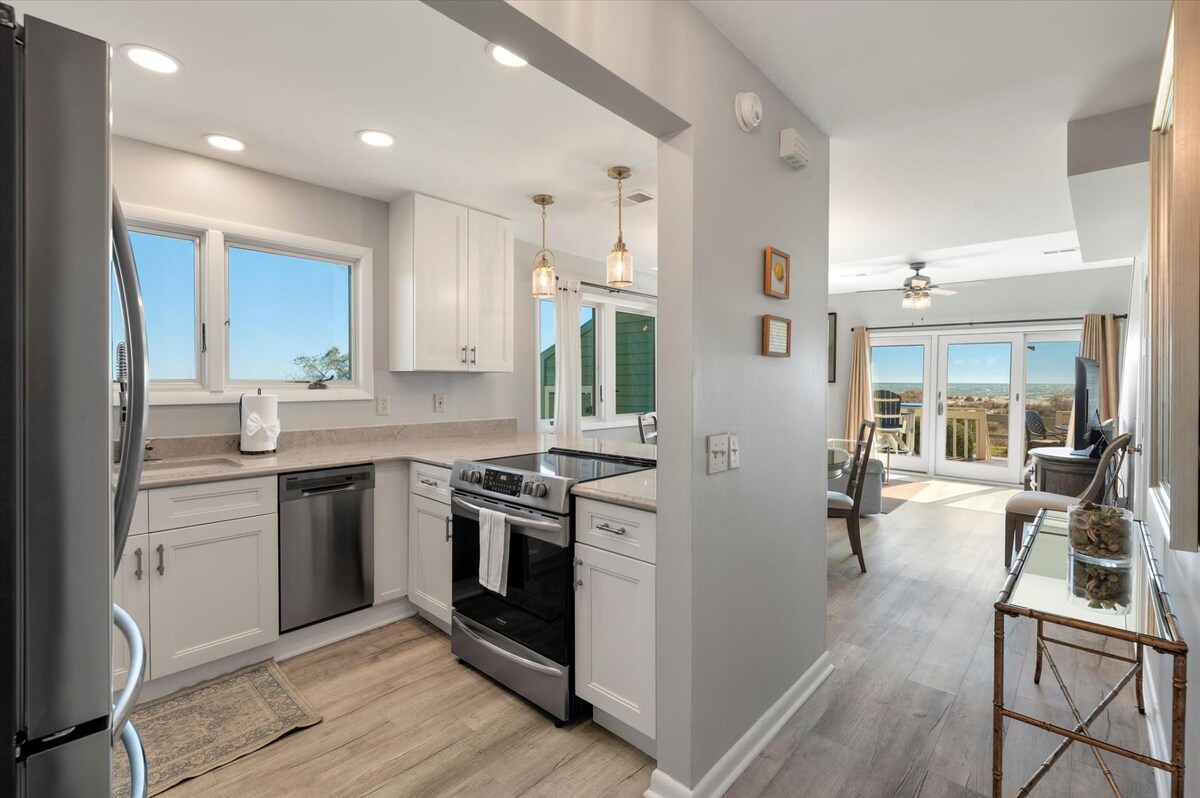 Disfruta de impresionantes amaneceres frente a la playa y cena en una acogedora mesa en tu propio balcón cubierto. El muelle privado y la piscina están a solo unos pasos del mar. Contempla impresionantes puestas de sol y el faro de la isla de Sullivan desde el dormitorio y la entrada. La decoración náutica, los suelos de vinilo de primera calidad y las paredes de madera se fusionan en este luminoso apartamento que conserva un espíritu de encanto sureño. La cocina gourmet está bien equipada con electrodomésticos de tamaño completo, máquina de hielo, dispensador de agua filtrada, encimera de granito, iluminación debajo de la encimera y una cómoda barra de café con múltiples opciones de preparación. ¡Las vistas panorámicas al mar son las mejores disponibles en Sea Cabins! Ubicado en el tercer piso, está a solo 3 puertas del final del edificio C. Disfruta de hermosos amaneceres directamente desde la sala de estar, la cocina o el balcón, y vistas del atardecer del faro de la isla de Sullivan desde la puerta principal o la ventana del dormitorio. Tendrás acceso privado a la playa, a la piscina comunitaria y al muelle de pesca. ¡Las tiendas de la isla, restaurantes, comestibles y entretenimiento están a solo unos pasos! Está convenientemente ubicado cerca de Mt. Pleasant, Shem Creek y el centro histórico de Charleston, lo que te ofrece opciones ilimitadas para comer, ir de compras y entretenerte. Esta casa tiene capacidad para 4 personas con una cama tamaño queen y un sofá cama tamaño queen con colchón de espuma viscoelástica. Disfruta de tus comidas en el bar o en el balcón. También hay instalaciones para asar al aire libre y mesas de picnic. La casa de la piscina cuenta con baños privados y una lavandería que funciona con monedas. Acceso solo por escaleras (sin ascensor). Cama de matrimonio Anfitrión ausente El apartamento está situado en Isle of Palms, una ciudad en la esbelta isla barrera del mismo nombre. Es famosa por sus playas rodeadas de apartamentos y restaurantes. Las tortugas marinas anidan en la zona. Un parque cercano incluye una playa, zonas de pícnic y un parque infantil. A poca distancia a pie de restaurantes, tiendas y entretenimiento. ¡A poca distancia en coche de la histórica Charleston, SC! Ten en cuenta que la propiedad tiene un videoportero en las instalaciones (en la puerta principal). No hay cámaras ni dispositivos de vigilancia dentro de la casa ni en el balcón.