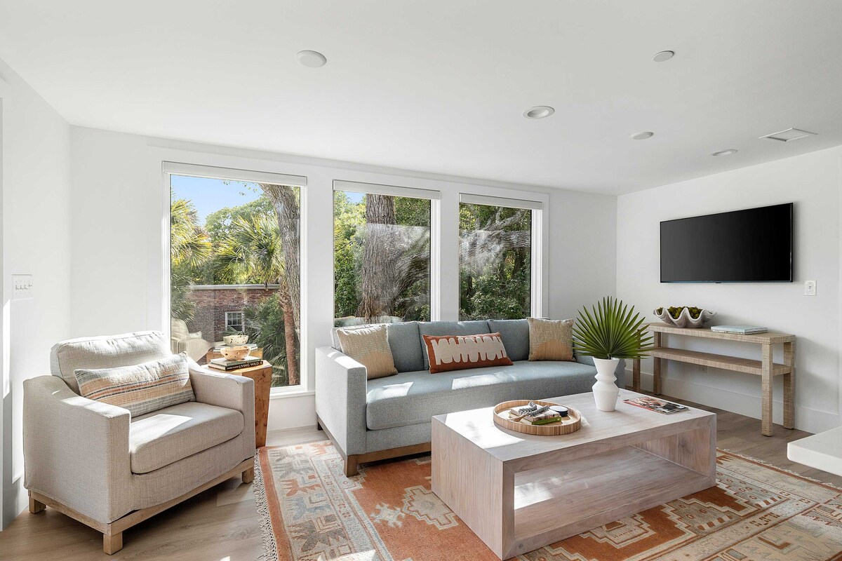 West Elm se encuentra con la histórica Charleston. 3 camas, 2 baños completos. Moderna y fresca reforma con el encanto de una gran casa de Charleston de 1838. Quedan muchos detalles de la casa más antigua, nueva cocina y puerta de granero hecha de madera reciclada de una casa de 1850 por un artesano local. El espacio abierto está decorado con arte local original y fotos vintage de Charleston. Relájate en el porche delantero con vistas a Bee St. Experimenta el verdadero Charleston y camina a todos los restaurantes/vida nocturna del centro de la ciudad desde esta pequeña joya de la historia. Unidad de 2º y 3º piso. ENTRA POR LA PARTE TRASERA.