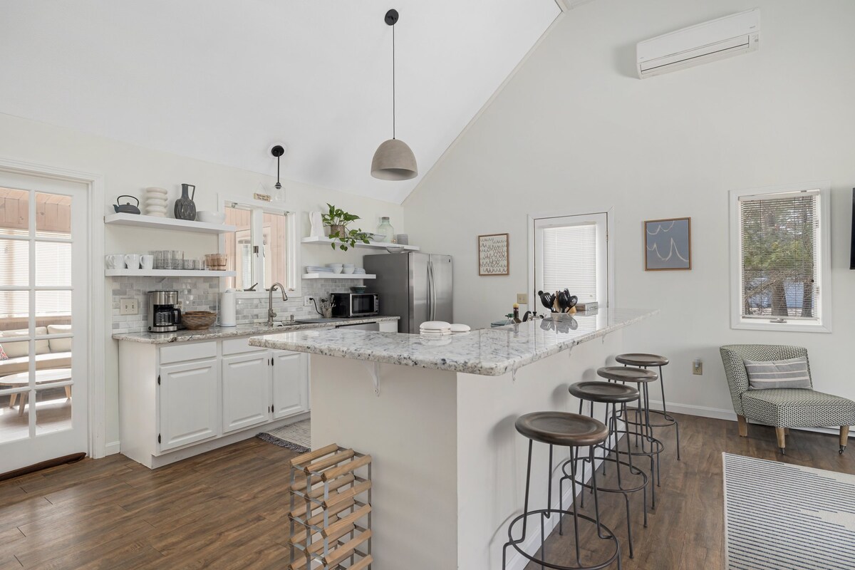 Este lugar tranquilo y céntrico es una casa de campo moderna, soleada y espaciosa de un dormitorio ubicada en el corazón del histórico Wakefield. Estamos a pocos minutos de muchas playas de Rhode Island. Pasea cuesta abajo hasta un encantador parque en el río Saugatucket y luego cruza la encantadora pasarela hacia la ciudad. Aquí encontrarás una gran variedad de restaurantes, cafeterías y heladerías, además de un excelente teatro comunitario, yoga y tiendas interesantes. Relájate dentro de esta casa llena de luz o siéntate en la terraza con vistas a los jardines y la ciudad.