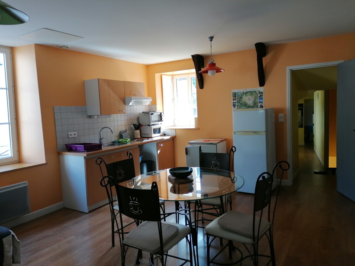 Le logement tout confort est au premier étage d'un immeuble situé en plein centre du village, il est donc proche de toutes les commodités et commerces, mais en même temps dans une rue calme et tranquille. Il est lumineux grâce à ses grandes fenêtres, et à un charme rustique grâce à ses pierres apparentes. Des places de stationnement gratuites sont à proximité. Tout est prêt pour votre arrivée, vous n’aurez qu’à poser votre valise et partir à la découverte du village.