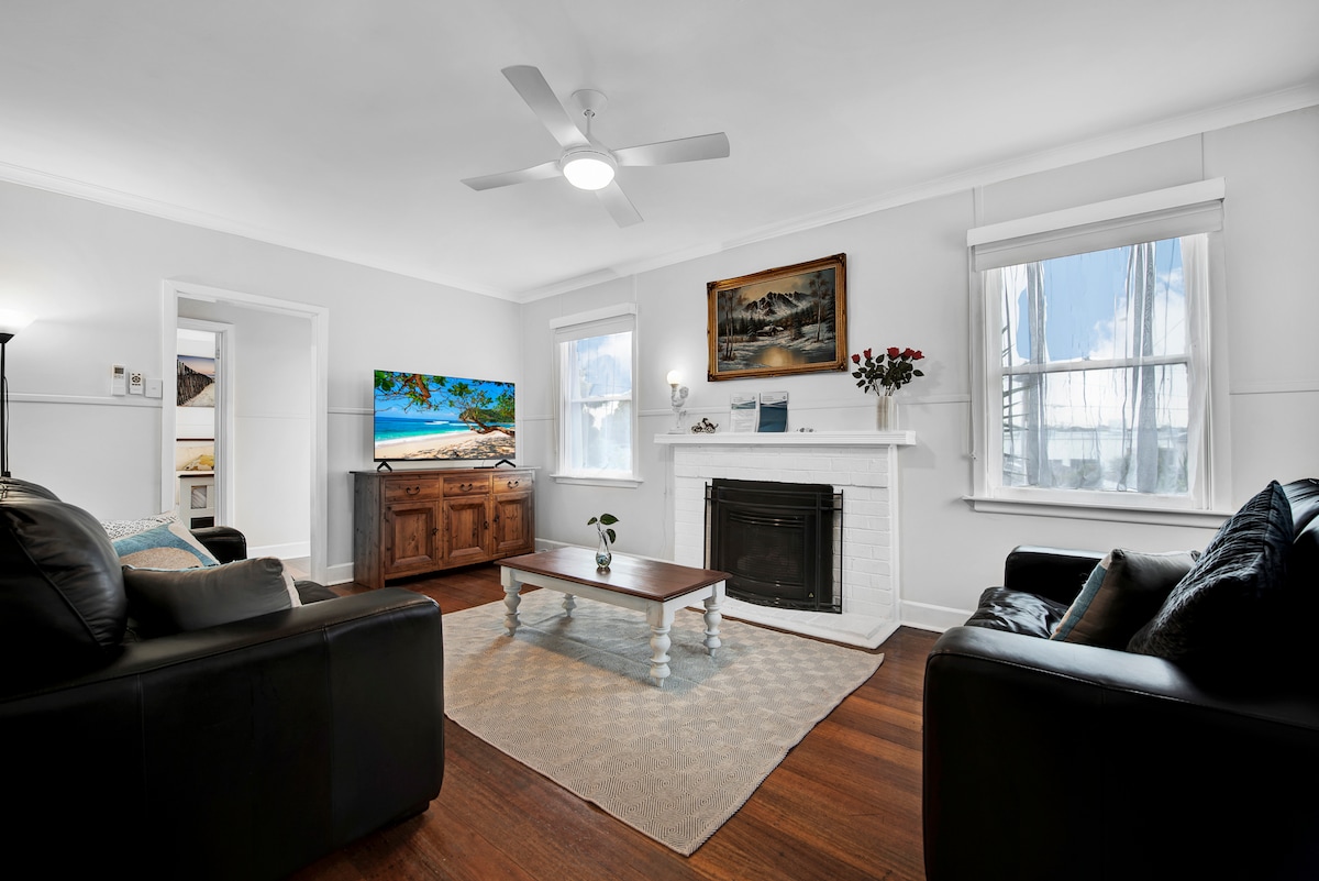 **¡Vacante rara entre el 22 y el 30 de noviembre y el 8 y el 15 de diciembre! PLAYA, VISTAS AL AGUA y Netflix, ¡con bañera de hidromasaje para sumergirse! Este departamento tiene aire acondicionado para el verano y una acogedora chimenea para el invierno. Cama queen en el dormitorio principal y 2 camas individuales/king en el segundo dormitorio, con ropa de cama de lujo. Mi alojamiento no es nuevo, pero está lleno de carácter y encanto en tonos blancos y azules mediterráneos. Es tu lugar de playa perfecto con un balcón y a poca distancia a pie de muchos restaurantes excelentes. Como superanfitrión, ¡te doy la bienvenida!