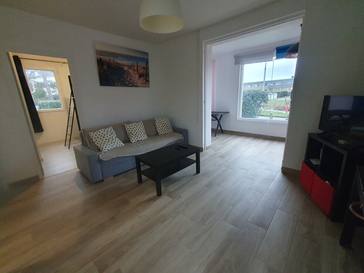 Ofrezco en alquiler nuestro bonito apartamento de 75 m2. ♥️ Lo he equipado y decorado con cuidado para que usted y su familia se sientan tan bien como nosotros. Está idealmente situado a 200 metros del mar, es un verdadero placer disfrutar de Barneville Plage y sus alrededores. Nuestro alojamiento totalmente reformado se encuentra en una segunda planta sin ascensor. Entrada, aseo, cocina/comedor y sala de estar en el primer nivel. Arriba, 2 dormitorios, un baño y un inodoro separado.