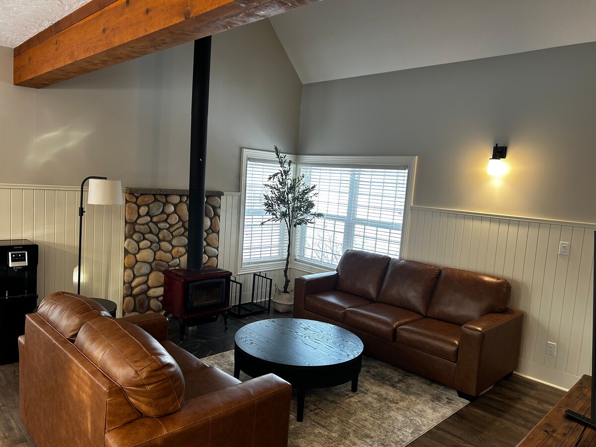 Escape to Octagon Oasis—where comfort meets fun in every season. Swim in the indoor pool, relax in the hot tub or sauna, and enjoy games like foosball, table tennis, air hockey, and karaoke. Cozy up indoors or play outside on the mini disc golf course. Only minutes from the lake, it’s the ideal spot for family getaways, fishing trips, or peaceful weekends.