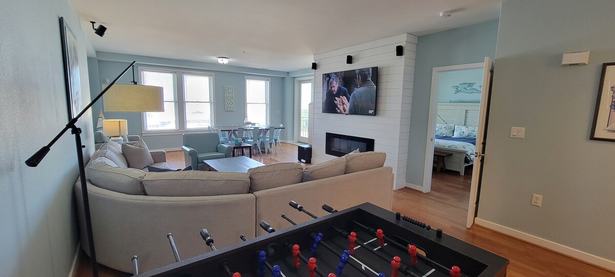 Piscina privada frente al mar en una espaciosa casa de 2600 pies cuadrados. A 3 cuadras del paseo marítimo de Virginia Beach, Vibe District. 4 dormitorios en una casa privada de tres pisos. 1er piso: 2 baños, un dormitorio con literas completas, cocina, comedor y sala de estar. El segundo lvl contiene un lux Mstr ste con jacuzzi masivo, dbl shwr y living rm . 3rd Lvl: 2+ bedrms, bathrms y balcones prvt (queen en 1 habitación y 2 dobles en la otra). Garaje para dos autos y entrada, NO un dúplex. Piscina sin calefacción. ¡Televisores modernos y cable!