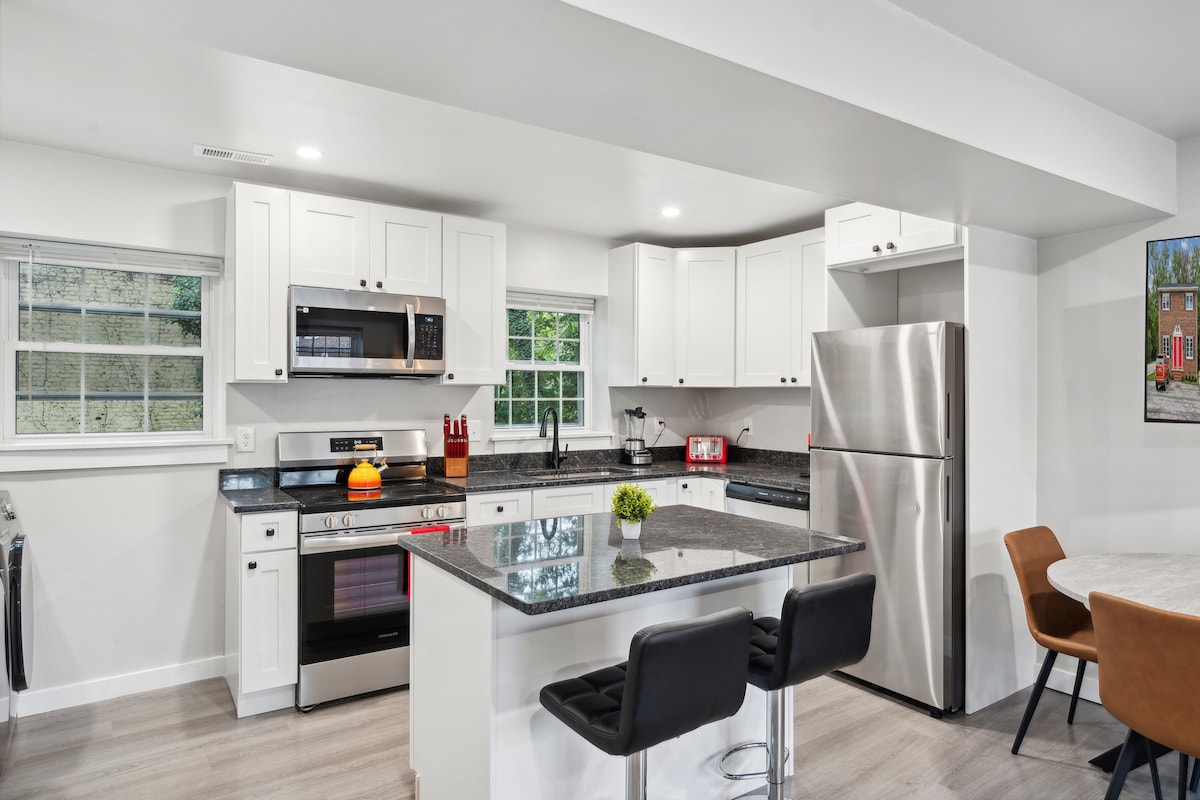 ¡Bienvenido a nuestro apartamento de diseño en el centro de Richmond! Lujosa vivienda en el corazón de Richmond. Con 2 camas tamaño king, 2 baños completos, TV de 75 pulgadas y una cocina totalmente equipada. Diseñado por Johnathan Miller. A pocas manzanas de los mejores restaurantes, asadores, cafeterías, bares y cervecerías. A minutos del centro de la ciudad, el centro de convenciones, la estación de Main Street, el sendero para bicicletas y el centro médico VCU. Fácil acceso al aeropuerto y a la interestatal. ¡Reserva ahora para una estancia inolvidable!