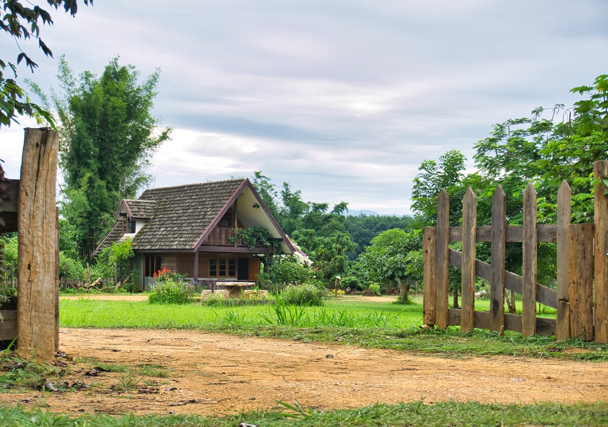 Villa privada en una antigua granja de té en un pequeño pueblo(Mae-Mae) del distrito de Chiang Dao. Aquí puedes relajarte del mundo moderno con sonido de naturaleza de pequeños arroyos y bosques. También tenemos actividades para parejas y familias durante la estancia con usted puede pedirle al mayordomo, como senderismo para ver el punto, pesca , masaje de hierbas. Una casa privada en un antiguo jardín de té en medio del valle de Mae Ma Village, distrito de Chiangdao, Chiang Mai, ambiente privado y tranquilo con los sonidos del arroyo y el sonido del bosque, algunas noches puedes encontrar la luz de la luciérnaga.