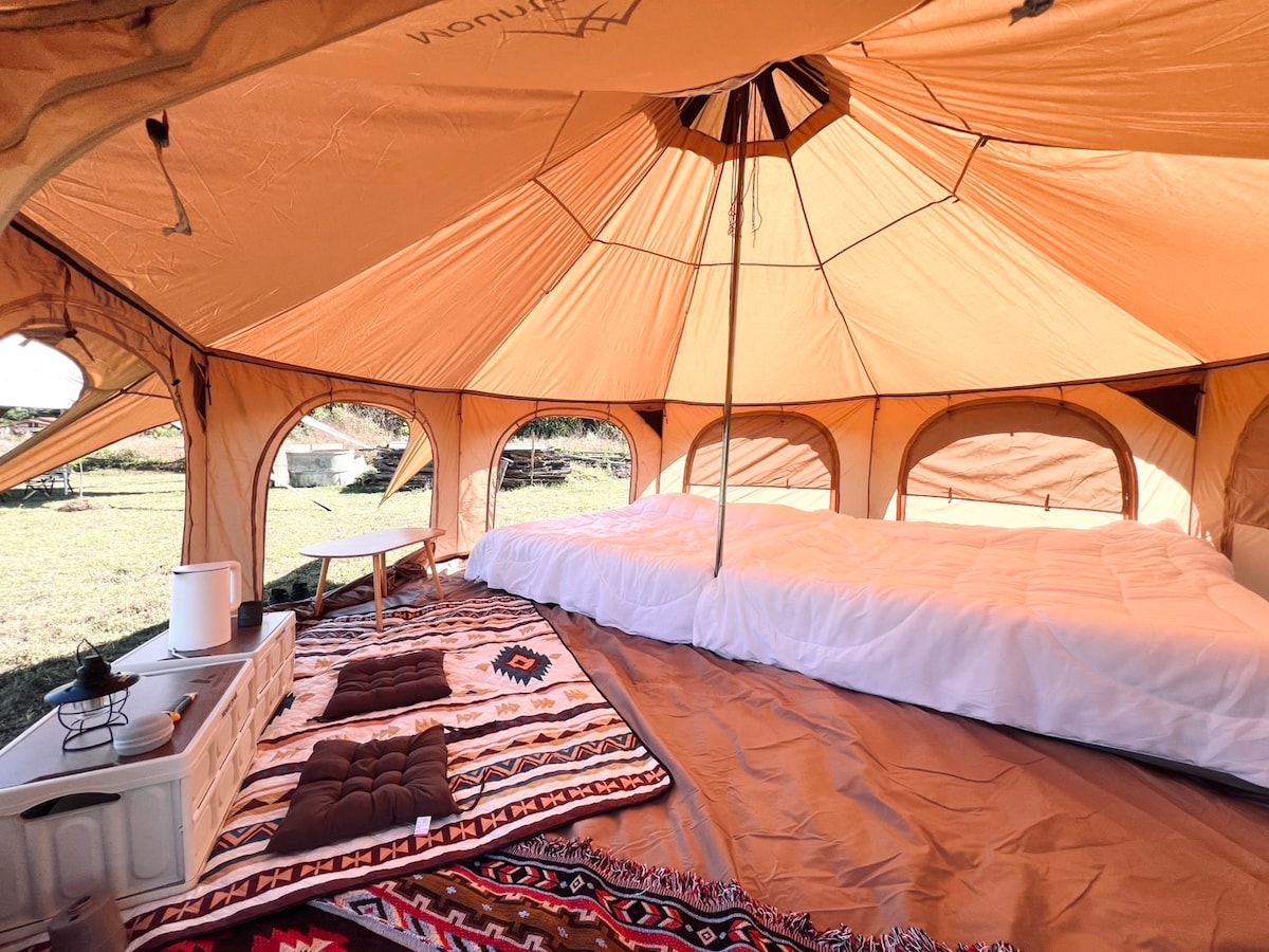 Disfruta de una experiencia de glamping única en Rim Thang Homestay, donde podrás relajarte en una acogedora tienda de campaña con cúpula con baño privado completo mientras disfrutas de impresionantes vistas panorámicas de la ciudad de Mae Suai. Despierta con impresionantes amaneceres, aire fresco de montaña y un entorno tranquilo. 🌿 Lo que te encantará: ✔️ Amplia tienda de campaña con cúpula y ropa de cama cómoda ✔️ Baño privado completo para tu comodidad ✔️ Increíbles vistas a la ciudad y a las montañas desde tu tienda de campaña ✔️ Un entorno tranquilo y natural, perfecto para relajarse
