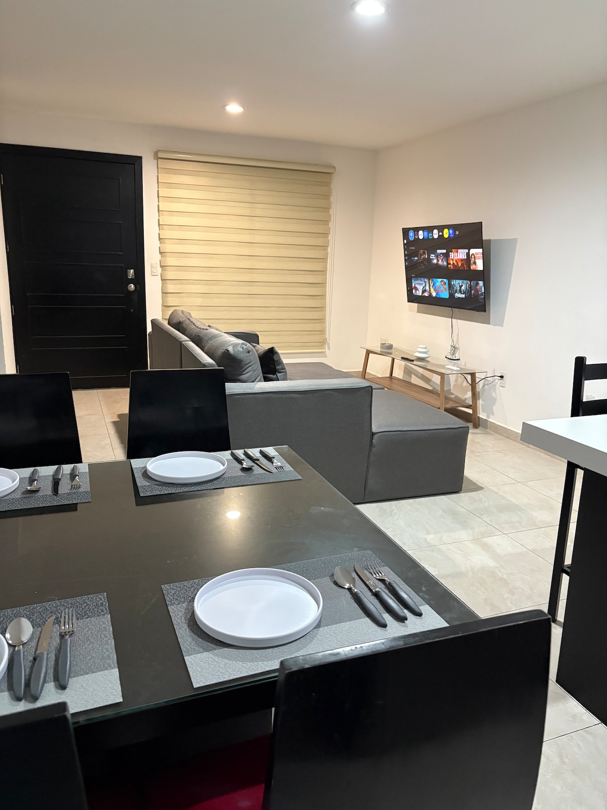 una experiencia super agradable y divertida, podrás controlar todo el departamento con tu voz gracias a la asistente virtual "alexa" contamos con televisión con todos los servicios de streaming (Netflix, amazon, hbo, claro video, Disney)