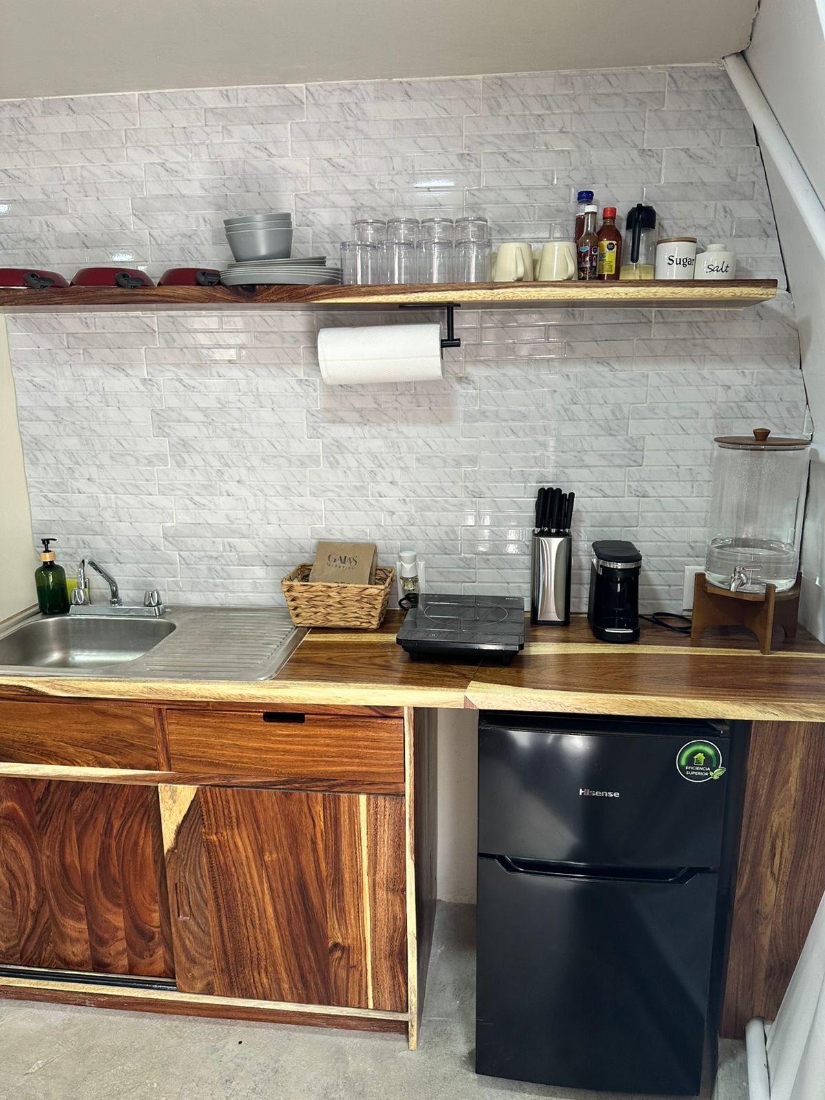 Casa para descansar, tipo cabaña. Contacto con la naturaleza. Cuenta con los servicios de: Agua, luz, gas, internet, agua caliente en regadera, aire acondicionado Mesa de Jardín y un asador rústico/fogón 1 recámara (Cama Queen Size) 1 baño completo Sala/comedor Smart TV-Netflix-Amazon video Cocina/utensilios Frigobar Cafetera Licuadora *La cabaña cuenta con cámara de videovigilancia solamente en la entrada. *Se ofrece el servicio de lavandería con costo extra dependiendo de la cantidad de ropa