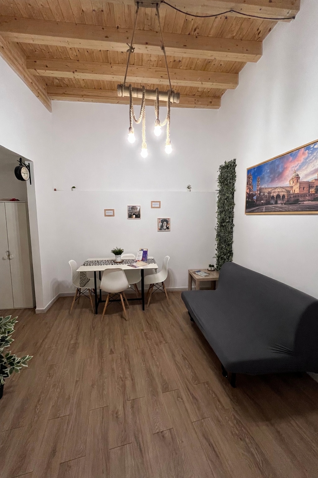 Loft amplio y luminoso en el corazón de Palermo, en el tercer piso sin ascensor de un edificio del siglo XVII, en una calle que va desde Via Vittorio Emanuele hasta Vucciria. Su ubicación céntrica permite llegar a pie a todos los puntos de interés, desde la Piazza Marina hasta la Catedral, pasando por los Quattro Canti. El gran salón tiene una entrada independiente, baño privado, una pequeña cocina y un balcón con vistas a la Via della Loggia; dispone de una cama doble en el altillo y un sofá cama.