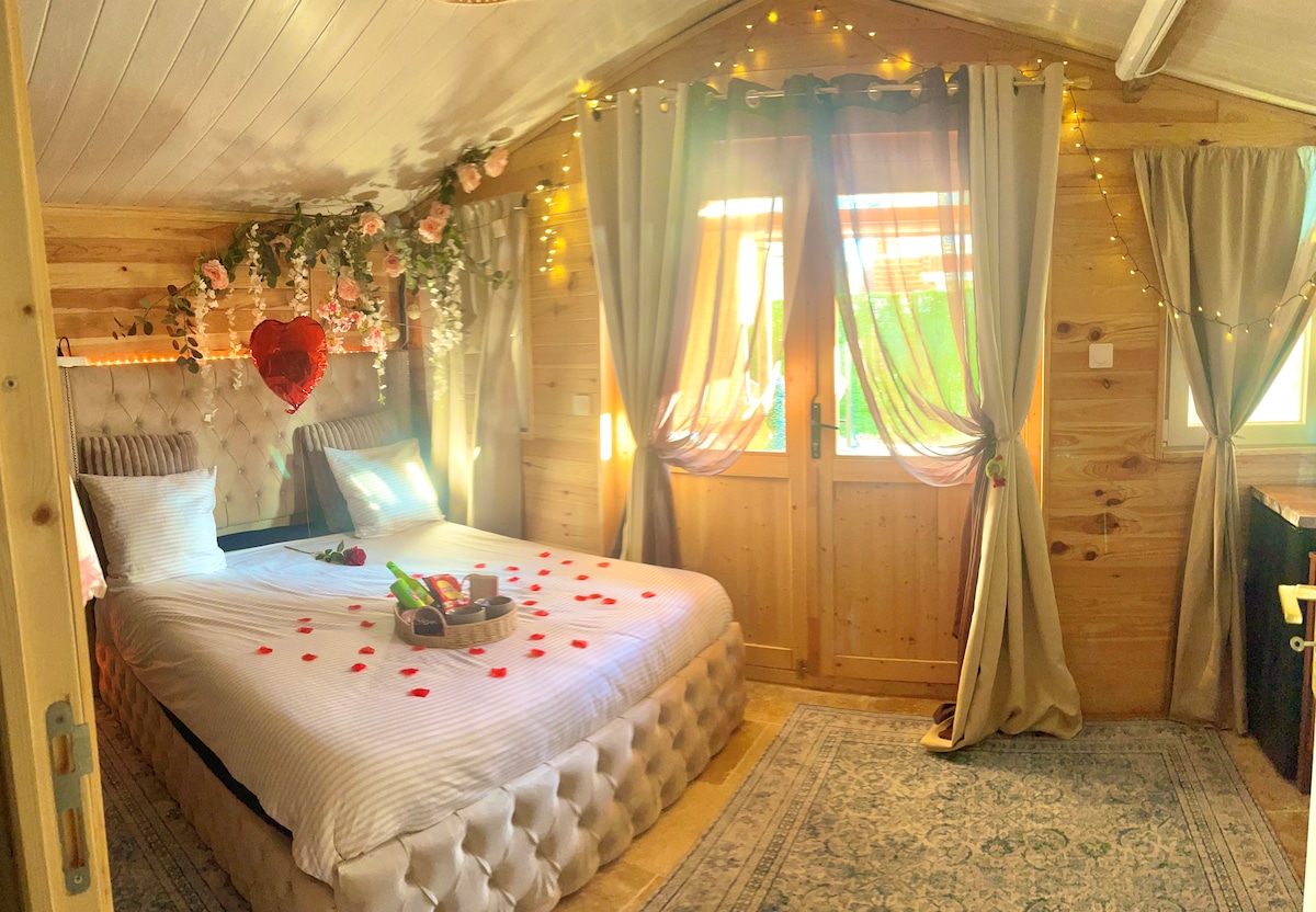 ✨ Offre spéciale ouverture du Spa ! ✨ Plongez dans un cocon chaleureux aux touches boisées et profitez d’une expérience immersive et relaxante dans notre nouveau Chalet Spa. Pour célébrer son ouverture, nous proposons des tarifs promotionnels exceptionnels ! Détendez-vous dans un sauna privatif et une balnéo relaxante, parfait pour une pause bien-être à deux. Le lit KingSize confortable est idéal devant votre home cinéma. 🪷🤗 Un refuge intime, pour un moment d’amour et de douceur inoubliable.