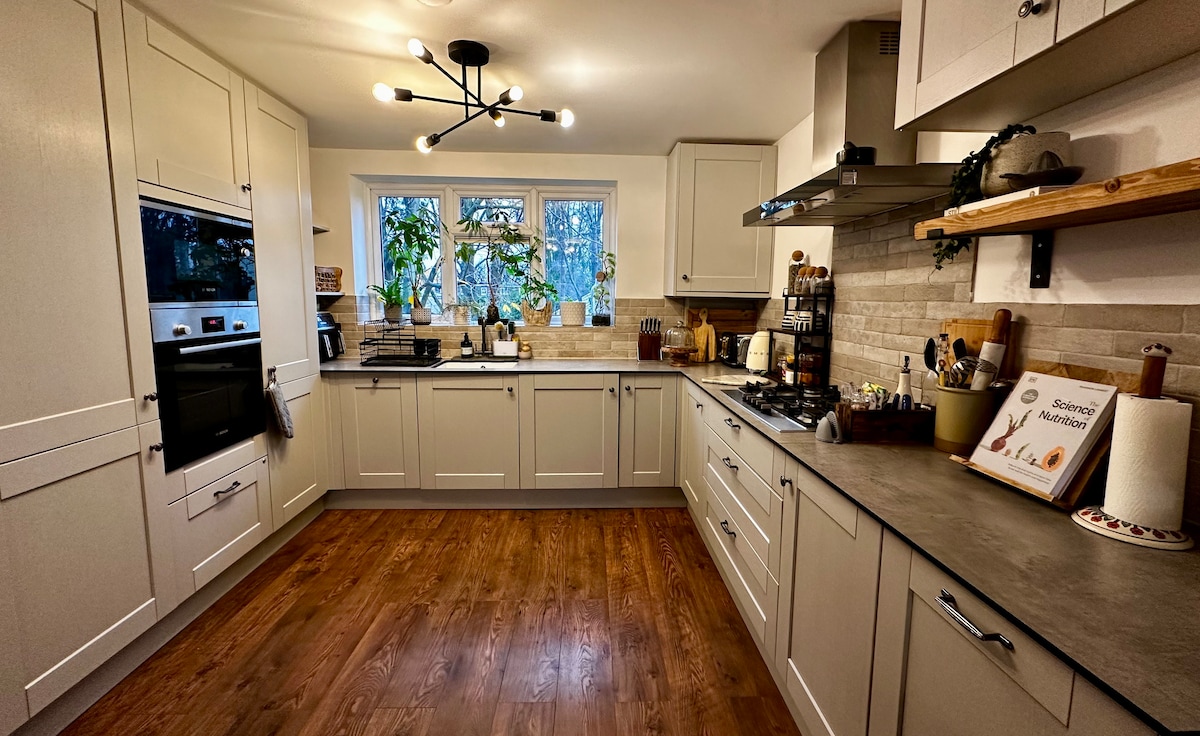 Moderna casa de campo con servicios elegantes y lujosos para disfrutar. Ubicación pintoresca y tranquila junto al río, no en una carretera. * 2 dormitorios dobles: ropa de cama de algodón egipcio suave con edredones de lana merino para dormir bien por la noche. * Cocina totalmente equipada: incluye máquina Nespresso Vertuo con Aeroccino * Cena en vajilla Villeroy Boch * Desayuno continental incluido. * Salón: TV OLED de 55 pulgadas con imagen cinematográfica y sonido Sonos. * Pídele a Alexa que reproduzca la música que quieras.