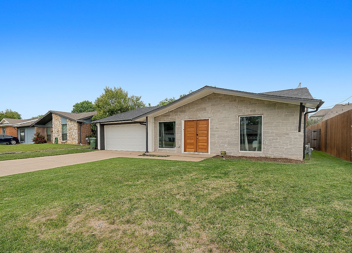 What you’ll ❤️ about your stay: - Centrally-located in the heart of Arlington - Within minutes of AT&T Stadium, Texas LIVE, Globe Life Field, Six Flags, Hurricane Harbor, University of Texas at Arlington, Billy Bob's of TX, Famous Stockyards of Fort Worth, & DFW Airport - 19 min walk to AT&T Stadium - Walking distance to shops, restaurants, & bars - Fire Pit/Grill/Outdoor Dining - Fully equipped Kitchen (pods/coffee provided) - High Speed Internet - (3) Smart TVs - Full-Size Washer & Dryer