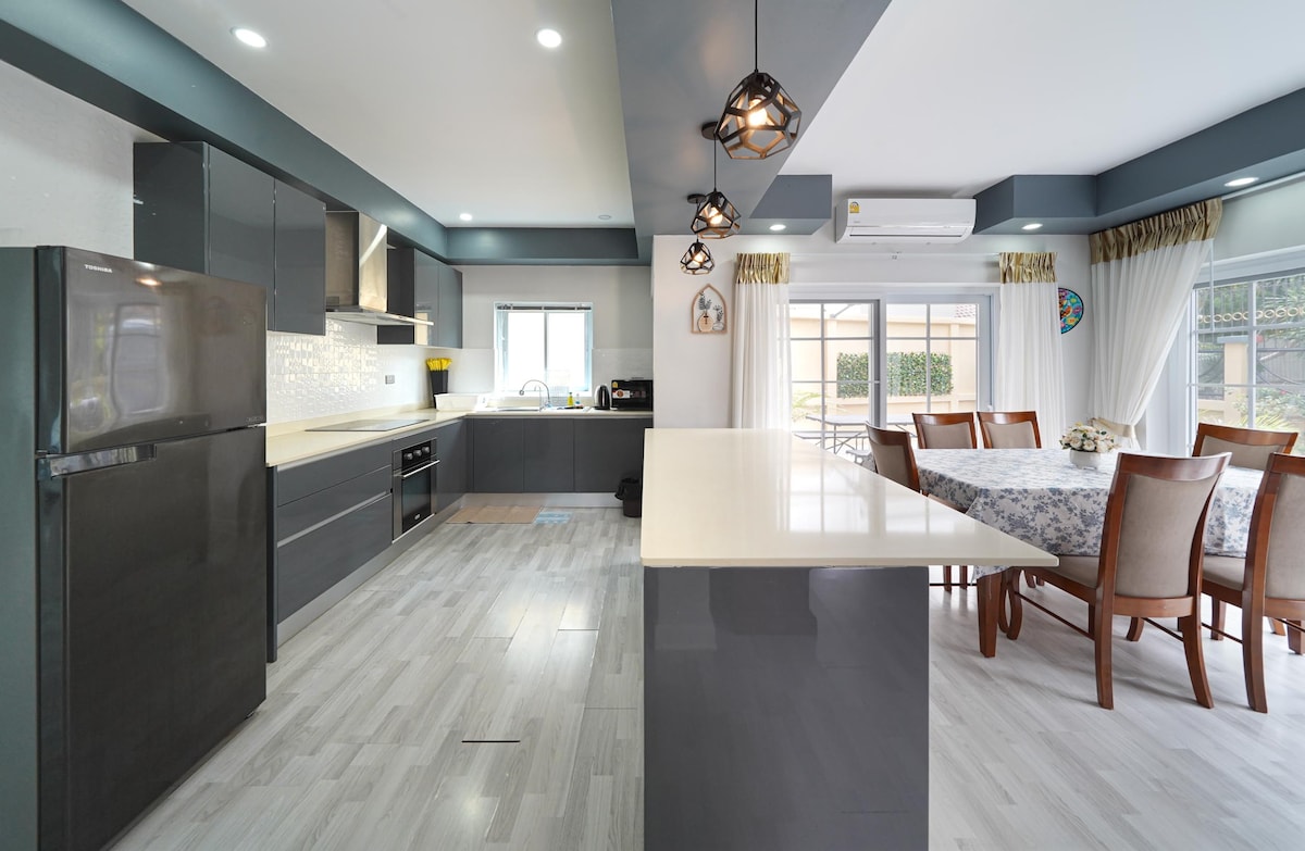 Relax with the whole family at this peaceful pool villa 5 minutes walk from secret beach. Take a fishing boat to discover the islands of Sattahip with a local guide. Enjoy the entire villa in privacy with your own swimming pool, outdoor charcoal BBQ , 65 inch Samsung smart TV, European style open kitchen, a convertible pool / table football and other games prepared for you. Within a peaceful quiet housing community in Na Jomtien, located conveniently between the main road and the beachfront.