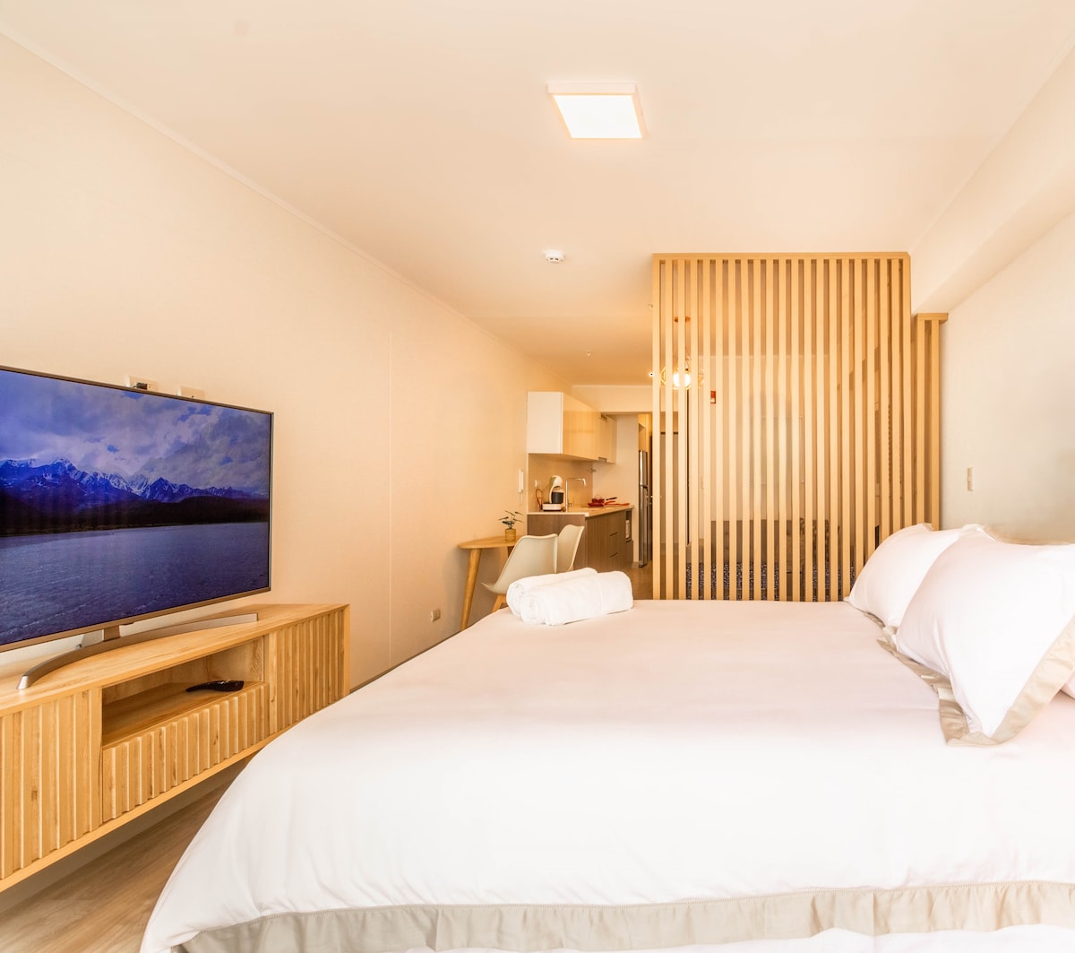 Departamento amplio y elegante en el corazón de Barranco. Ubicación privilegiada: A pasos de los principales puntos turísticos de Barranco y Miraflores, de los mejores restaurantes, bares y galerías de arte. Dormitorio principal: Cama king-size y gran walking closet. Espacio abierto y luminoso: Sala de estar y kitchenette con luz natural. Cochera privada: sujeta a disponibilidad Áreas comunes: Gimnasio, ambiente para reuniones y area de juego para niños. Estilo minimalista.