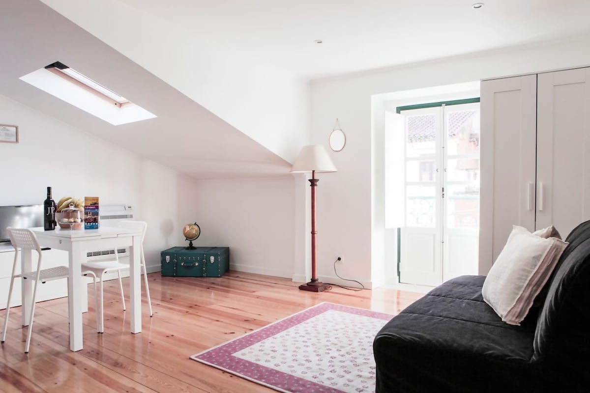 Studio 15 is a new, very well decorated and cozy apartment. A great choice for travelers interested in exploring the old town atmosphere and city walks that benefits from a privileged location: - 100m from Martim Moniz square where you can catch the famous Tram nº28 - Rossio 300m - Chiado 700m - S. Jorge Castle 1km The studio has 1 bedroom with double bed, bathroom and a living room with a sofa bed and kitchenette. We offer Free Wi-Fi. There's a flight of stairs to reach the apartment.