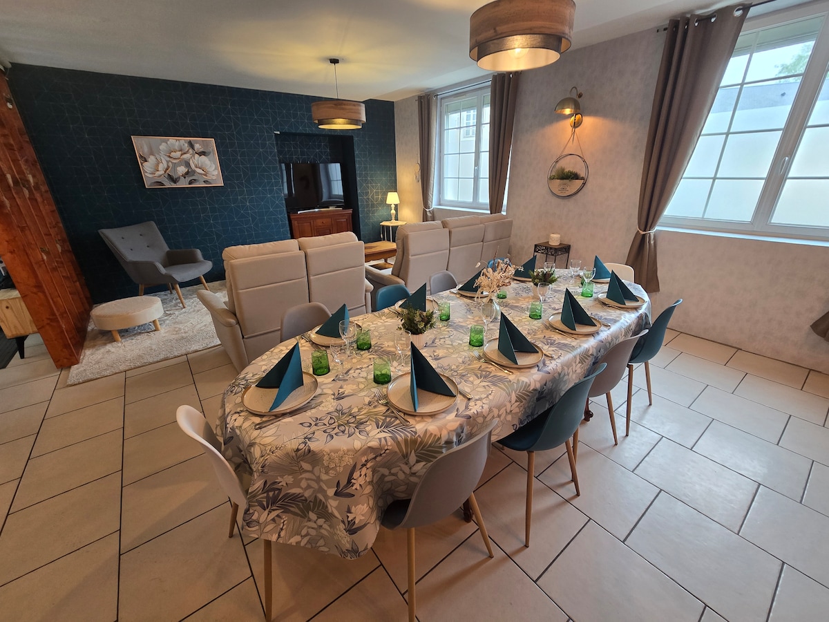 «Au Gobelet de Coëffort» ¡Bienvenido a nuestra casa-apartamento de 135 m² cerca de la estación del norte! Venga a pasar un rato agradable en familia o con amigos alrededor del futbolín, el bar de cócteles o la máquina de discos. La gran cocina luminosa y el amplio salón permiten pasar buenos momentos compartidos. Nuestro alojamiento se adapta perfectamente a tus momentos de trabajo entre compañeros: wifi, RJ45, cerca de la estación de tren (a 10 minutos a pie), 3 dormitorios con baño e inodoro privados, terraza...