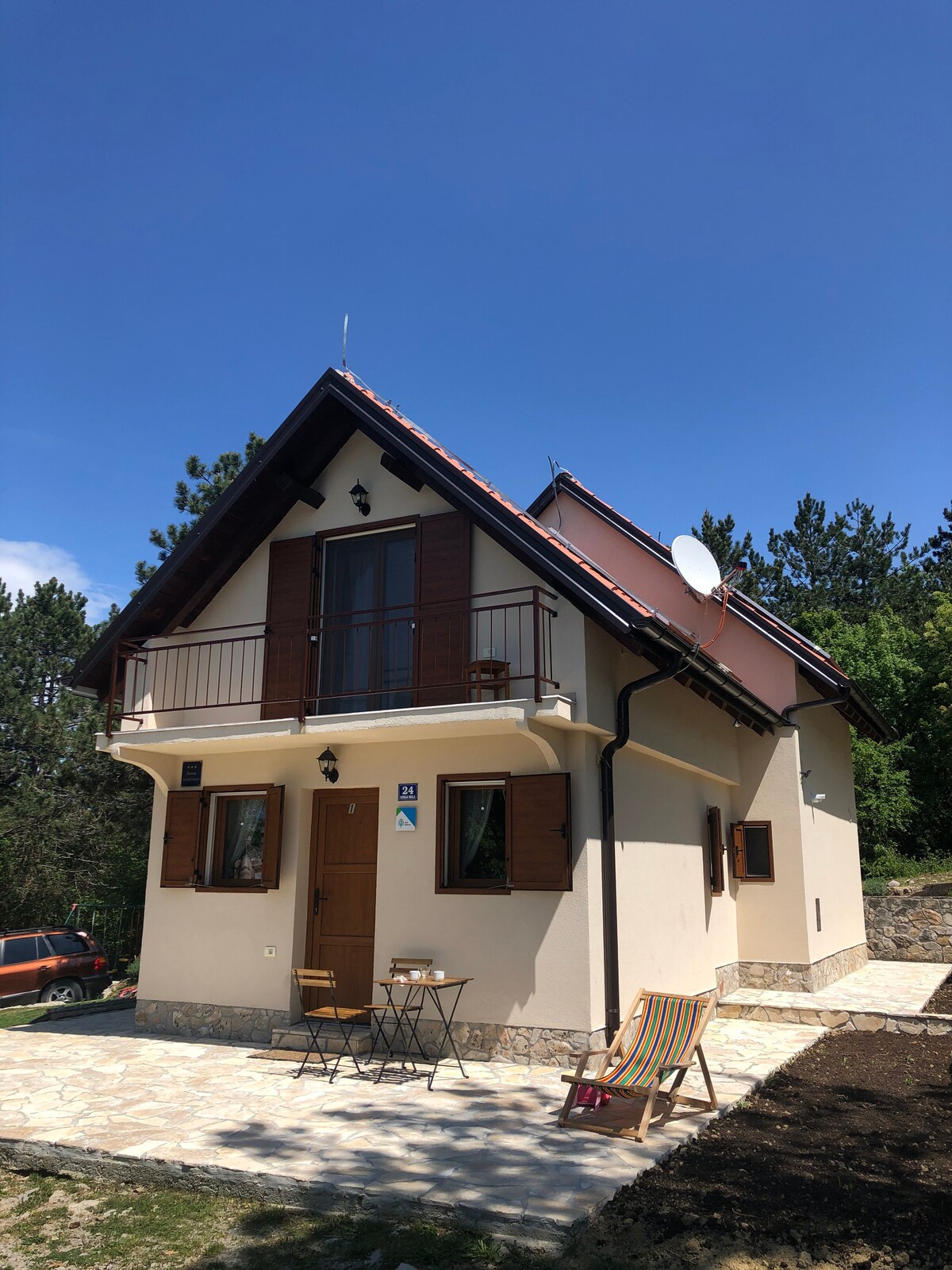 Alojamiento en las colinas de Istria Situada en la ciudad más pequeña del mundo, Hum. Antigua casa renovada con estacionamiento privado, hermoso balcón con vistas a la montaña Učka y las colinas de Istria, rodeada de naturaleza. Cerca de Kotle, 7 cascadas, zonas de escalada. Hum está situada en el norte central de Istria, a 30 minutos de la playa. Aquí puedes explorar la naturaleza y también reservar un tour de caza de trufas. Hum es un pequeño pueblo con restaurante y nuestra tienda y sala de degustación Colmo donde puedes degustar y comprar productos locales.