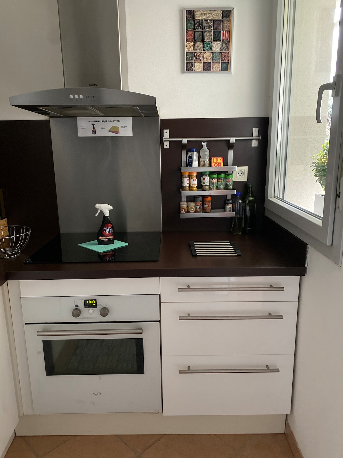 tranquilo y elegante, pequeño estudio independiente en el jardín de una casa adosada. Estilo mini casa independiente Tiny House. Bien equipado. Sofá cama con ropa de cama de calidad para el día a día. Somier de láminas y colchón de 45 kg/m3. Cuarto de baño coqueto. Espacios de almacenamiento. Cocina equipada, microondas grill, lavadora, mini lavavajillas, pequeños electrodomésticos disponibles. Aparcamiento para coches pequeños. Zona de terraza exterior con mesa, sillas y sillones para relajarse