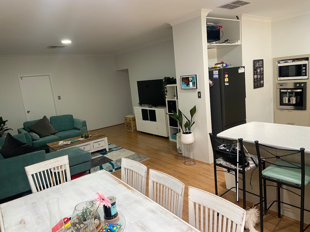 Disfruta del baño privado, la nueva cocina privada, el hermoso patio privado, el aparcamiento gratuito y el wifi ilimitado. Está adosado a una casa más grande. Este lugar especial está: 1) A 5 minutos a pie de una gran variedad de restaurantes y bares. 2) A 600 metros del centro comercial, Colse, IGA y el supermercado Aldy. A 2 km del supermercado Spudshed (supermercado 24/7). 3) A 5 km del aeropuerto. 4) A 7 km de la ciudad. La parada de autobús está en la puerta. 5) A 3 km de la Universidad de Curtin. 6) A 3 km del Casino Crown y del estadio de Perth.
