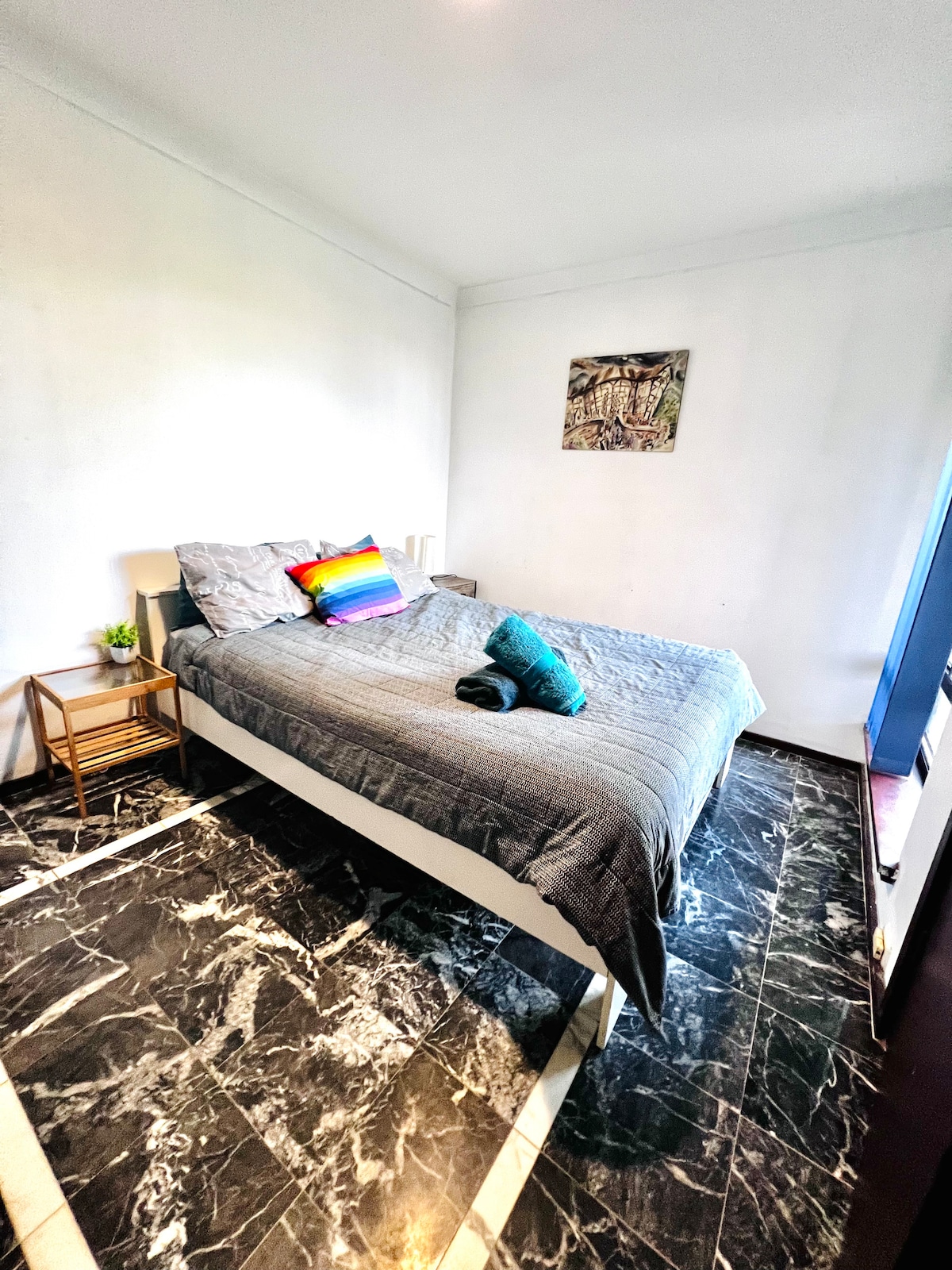 Asequible estancia de larga duración en la ciudad con dormitorio tamaño queen