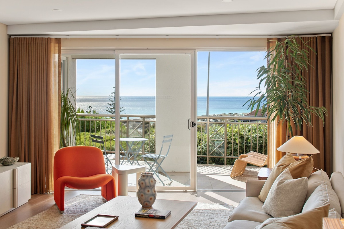 Taking in spectacular ocean views from its commanding outlook, this luxuriously appointed, top floor apartment is the ultimate ocean side haven. A huge open-plan living and dining area incorporates a stunning kitchen into its sleek design, whilst at the same time extending outdoors to a large tiled balcony with a picturesque backdrop of the Indian Ocean. The apartment has three generously sized bedrooms, with the bonus of a large study space illuminated by its own skylight The master suite h