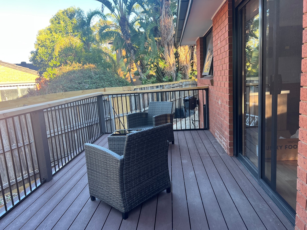 Un refugio elegante y acogedor en el condado de Nillumbik - Green Wedge - Apollo Parkways Estate, Greensborough. La casa de huéspedes tiene un dormitorio espacioso y un baño privado, un cómodo salón con cocina y lavandería. Aparcamiento en garaje disponible para los huéspedes. Cerca de muchas atracciones y servicios diferentes, como el hermoso sendero Plenty Gorge y Plenty River. La estación de tren de Greensborough y la plaza están a 5 minutos en coche, y las universidades RMIT y La Trobe están a poca distancia en bicicleta.