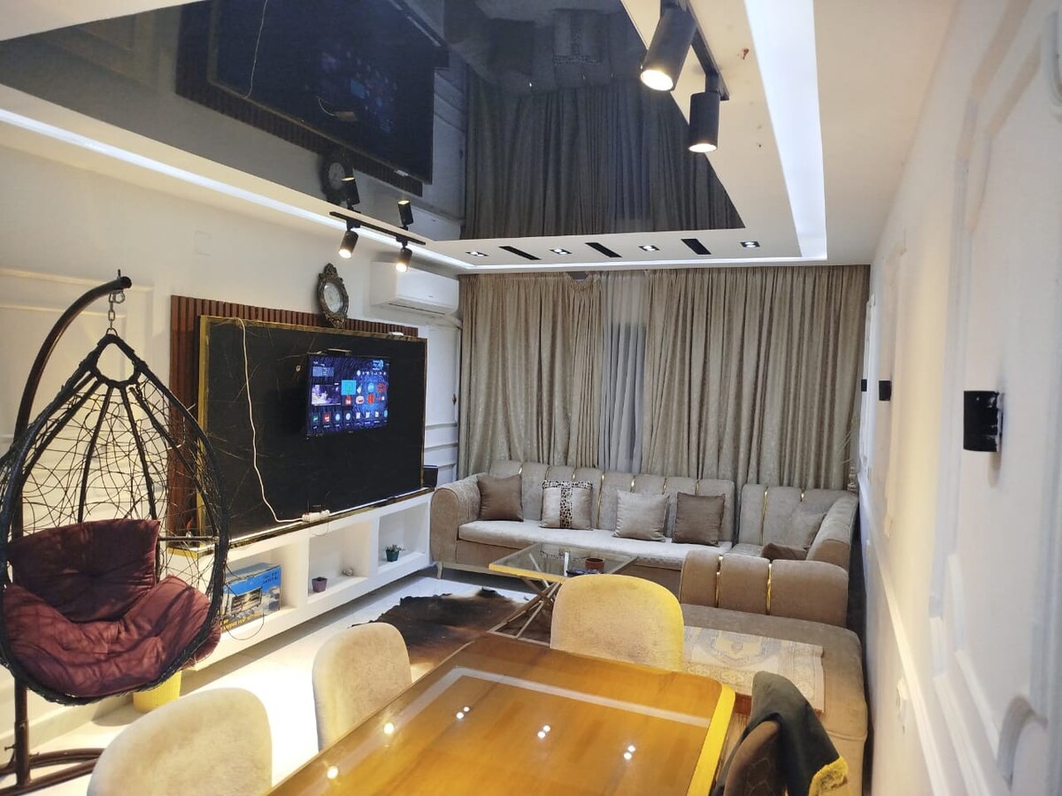 Bienvenido a nuestro apartamento elegante y espacioso en el corazón de El Cairo. Nuestro espacio moderno y cómodo es perfecto para familias, parejas y viajeros solos que buscan una estancia cómoda y agradable. El apartamento cuenta con dos dormitorios, zona de cocina totalmente equipada, wifi de alta velocidad, aire acondicionado y TV de pantalla plana. Ubicado en un barrio vibrante, a poca distancia a pie de las principales atracciones, nuestro apartamento es la base perfecta para tus aventuras en El Cairo. ¡Esperamos recibirte!