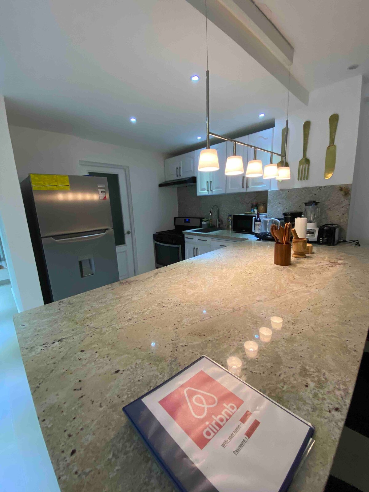 Diviértete con toda la familia en este elegante lugar. Con la privacidad y los servicios necesarios para tener momentos inolvidables, cuenta con cocina completa, baño completo en las dos habitaciones principales, la otra habitación tiene un baño de servicio. Tenemos aire acondicionado en Habitación principal siempre que haya electricidad, hay ventiladores en la pared y ventilador de techo en la sala de estar. Ingresa con un código de acceso # ¡Es un cuarto piso, no hay ascensores! Pero ofrecemos ayuda con el equipaje siempre y cuando me avises con anticipación.