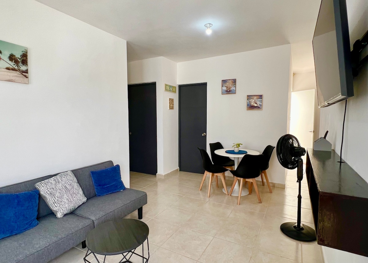 🌴 ¡Escápate al descanso perfecto cerca de la playa! 🌊 Disfruta de una estancia cómoda y relajante en nuestro amplio departamento, ubicado a solo 5 minutos de la playa. Ideal para familias o grupos de amigos que buscan confort y una excelente ubicación ✨ Lo que te ofrecemos: 🛏️ Habitaciones equipadas con colchones Spring Air garantizando un descanso óptimo ❄️ A/C en cada habitación 🚿 Baño completo 📺 Pantalla para tu entretenimiento 🏡 Espacios amplios y cómodos para una estancia placentera.