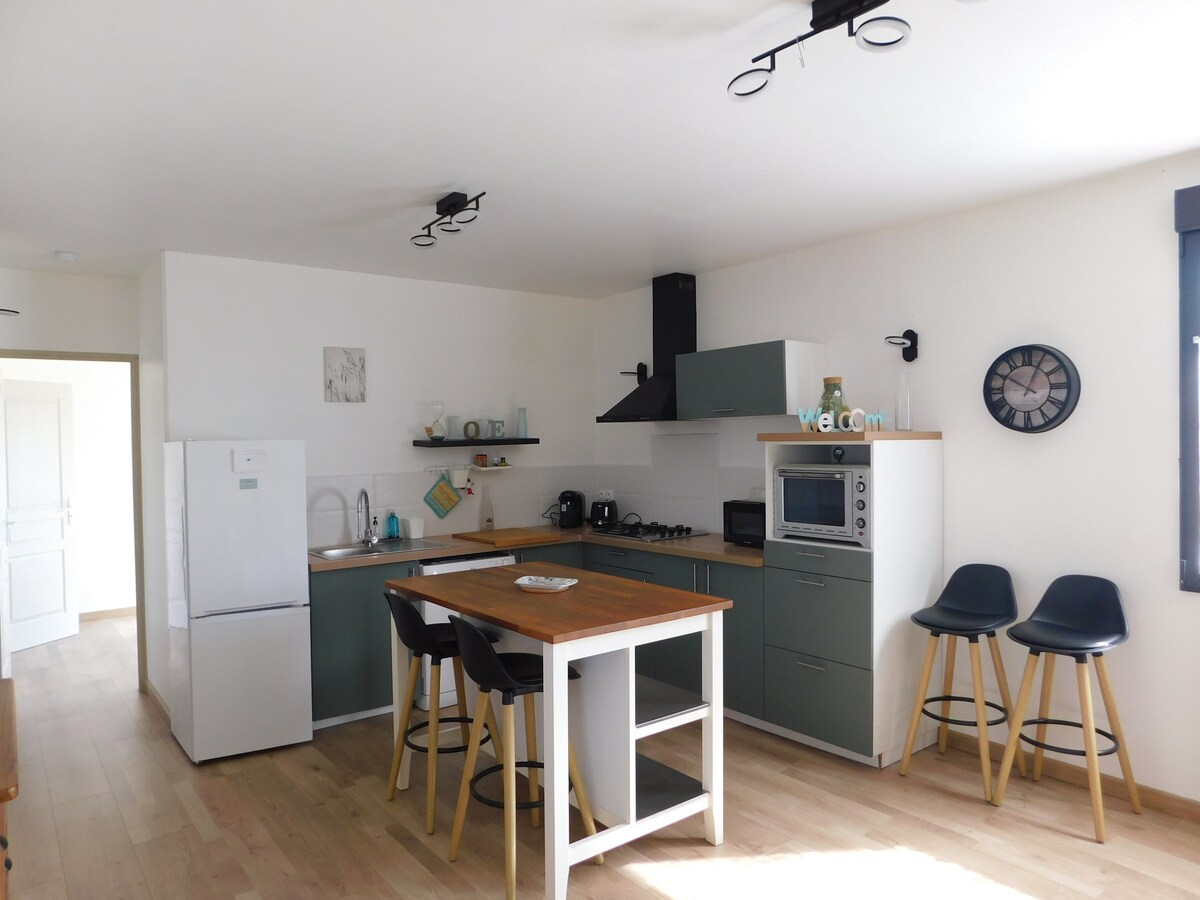 Bienvenido a la «Boot House», ¡nido TOTALMENTE NUEVO de 45 m2 muy bien decorado y TOTALMENTE EQUIPADO! Al entrar, encontrará una zona de TV conectada a la fibra. Una hermosa mesa con capacidad para 4 personas. Una cocina totalmente equipada (horno, placa eléctrica, campana extractora conectada, lavadora, lavavajillas, nevera, …) que formarán el confort necesario para su tranquilidad. ¡Adelante y encontrará a la izquierda el baño y todo recto una bonita habitación con cama doble de 160 con gran armario!