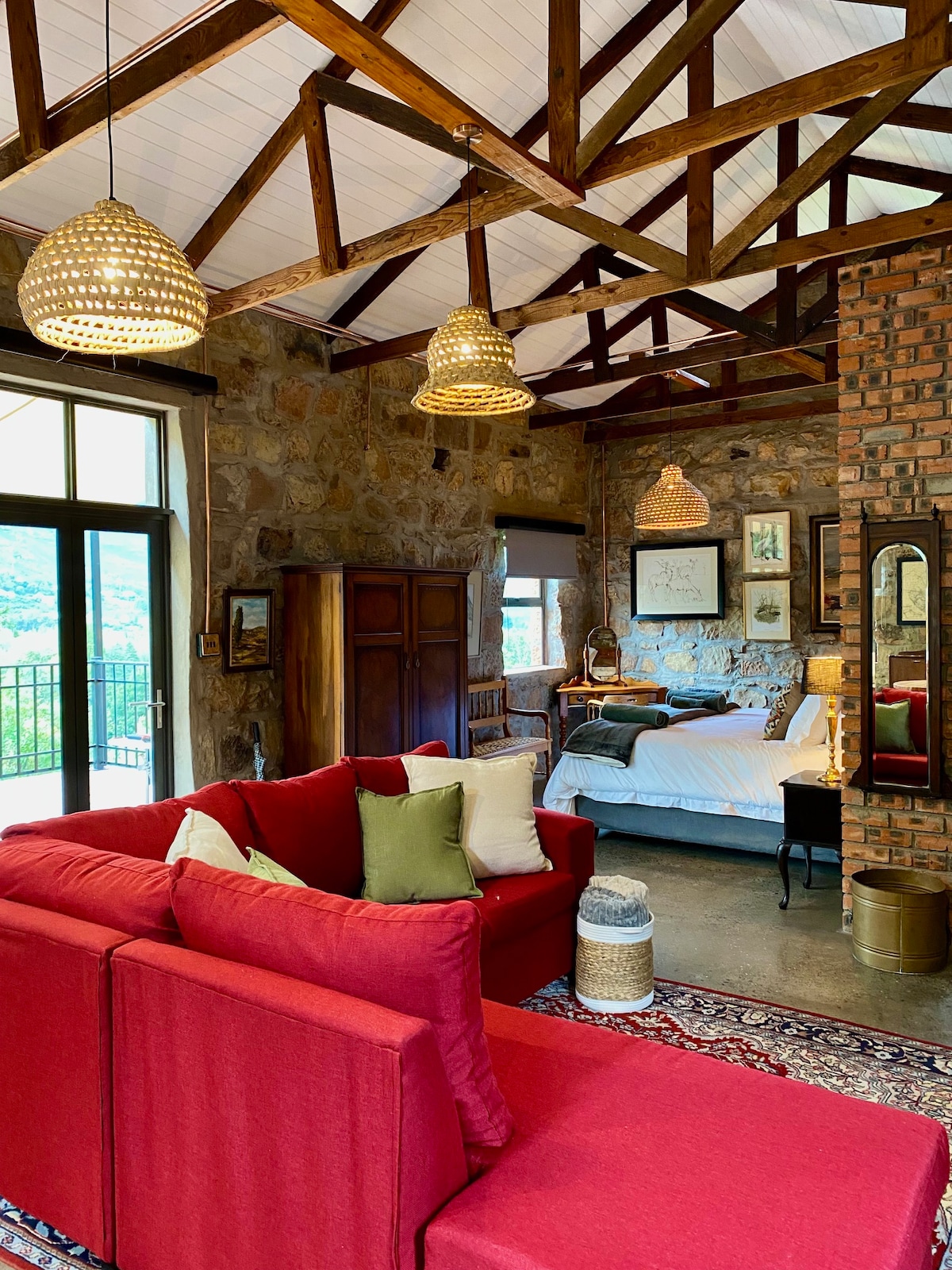 Esta es nuestra unidad apta para sillas de ruedas. Es una unidad de planta abierta con un dormitorio, sala de estar y cocina con vistas a las montañas. En el interior hay una chimenea para los fríos meses de invierno y en el exterior tienes un encantador braai en tu propio jardín privado. Esta unidad solo es adecuada para una pareja (no para bebés o niños). Hay opciones de estadía más larga con tarifas con descuento disponibles.