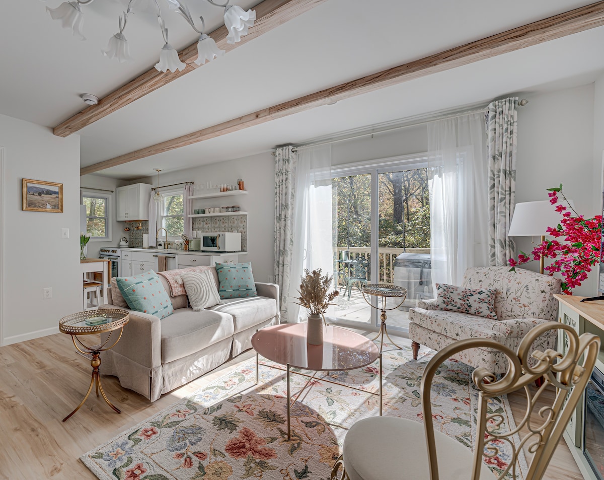 ¡Escápate a este alegre y elegante refugio a nivel de jardín en el corazón de Bluemont! Camina hasta Bluemont Station Winery y pasea por el pueblo. Espacio acogedor y apto para mascotas con entrada privada, patio, chimenea y baño completo. Disfruta de wifi rápido, una cama tamaño queen, un futón y una cocina pequeña bien surtida. El patio compartido tiene un arroyo, vistas a la montaña y los simpáticos cachorros Cooper y Zeus. Explora las bodegas, granjas y senderos cercanos para disfrutar de la escapada panorámica perfecta.