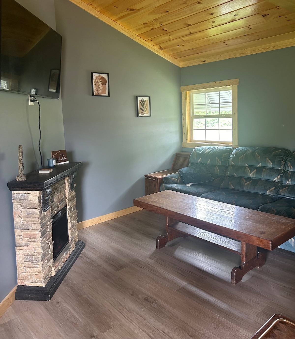 ¡Te damos la bienvenida a La Ponderosa! Esta escapada única al lago incluye una pintoresca cabaña construida por los amish, una casa con cocina y una casa con 2 literas. Todo se conecta a una ENORME envoltura alrededor de la cubierta construida para entretenerse y relajarse. ¡Pequeña, sencilla y preparada para una escapada relajante con la familia! Esta propiedad tiene un amplio sendero peatonal hasta la línea roja. Entrada privada cerrada y amplio estacionamiento para muchos coches/remolques. Hay alquiler de barcos y muelles de alquiler disponibles en los cercanos puertos deportivos de Ponderosa y Wax. ¡NUEVA BAÑERA DE HIDROMASAJE!