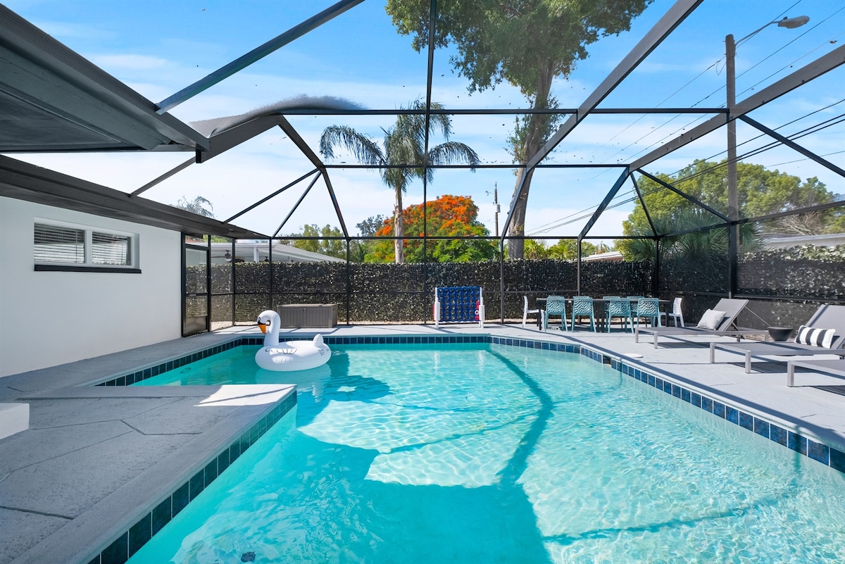 ¡Esta espaciosa casa de 4 dormitorios en Florida es perfecta para familias y amigos! Ubicada en un barrio tranquilo, cerca de todo lo que Tampa Bay tiene que ofrecer. ¡A solo 20 minutos de Clearwater Beach! ¡Disfruta de una enorme sala de estar, cocina completa, 2 suites King y 2 dormitorios más donde 10 personas pueden dormir cómodamente! Nada en la gran piscina climatizada (83 °F), relájate junto a la hoguera o cocina en la parrilla de propano. Si tienes alguna pregunta, no dudes en ponerte en contacto conmigo. Estoy deseando recibirte.