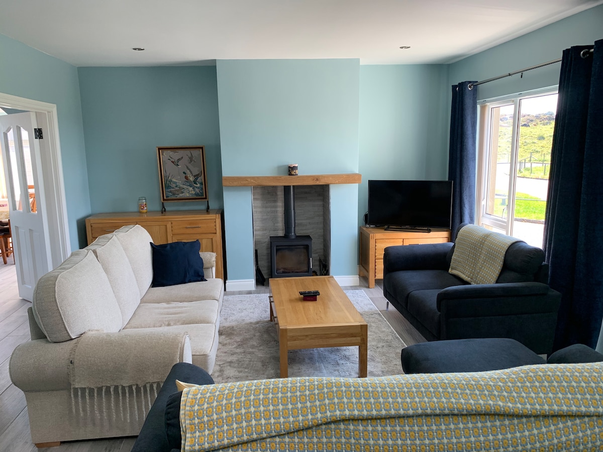 Una casa encantadora, espaciosa, espaciosa, limpia y cómoda situada en Atlantic Drive con vistas espectaculares al mar y a la tierra. Fantásticos paseos, 2 fabulosas playas, opción de 5 campos de golf, 3 hoteles y numerosos pubs, restaurantes y entretenimiento. Las actividades cercanas incluyen: Campo de prácticas Senderismo con ponis y ponis de golfo Surf de remo con windsurf Alquiler de bicicletas Piscina Rango de pesca en el mar a pie para todas las habilidades El impresionante paisaje de Donegal en el arte y la artesanía