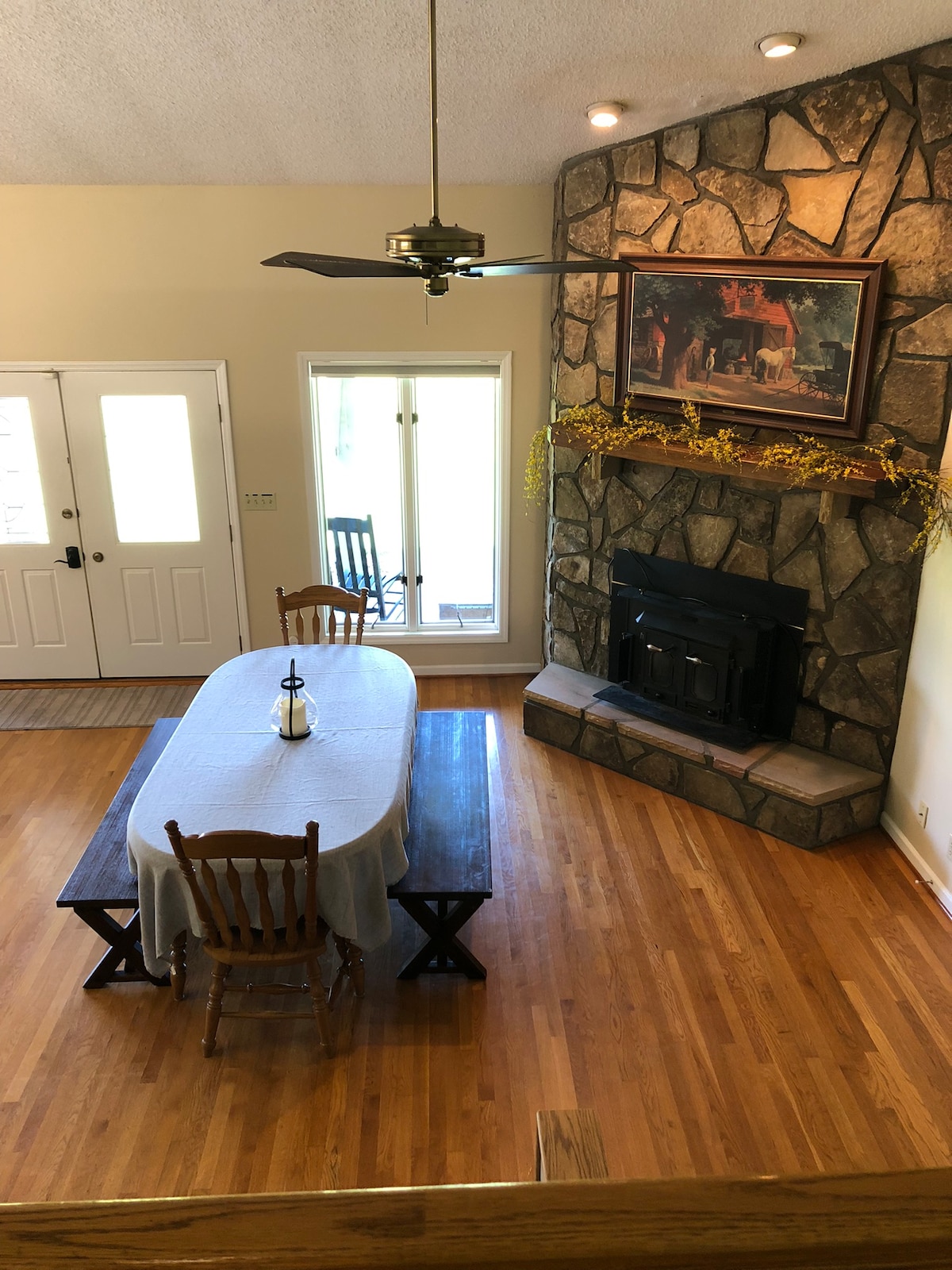 Relájate en esta escapada única y tranquila. No tienes que irte para ver las hojas. Recorre nuestros senderos segados alrededor de nuestros campos. Cocina en la parrilla o en nuestra cocina totalmente equipada. Lluvia, no te preocupes, siéntate en el porche. ¡Nos vemos! Tenga en cuenta que teníamos un vecino cuyos caballos venían a visitar de vez en cuando. Los caballos ya no están aquí. Ahora viven en Georgia.