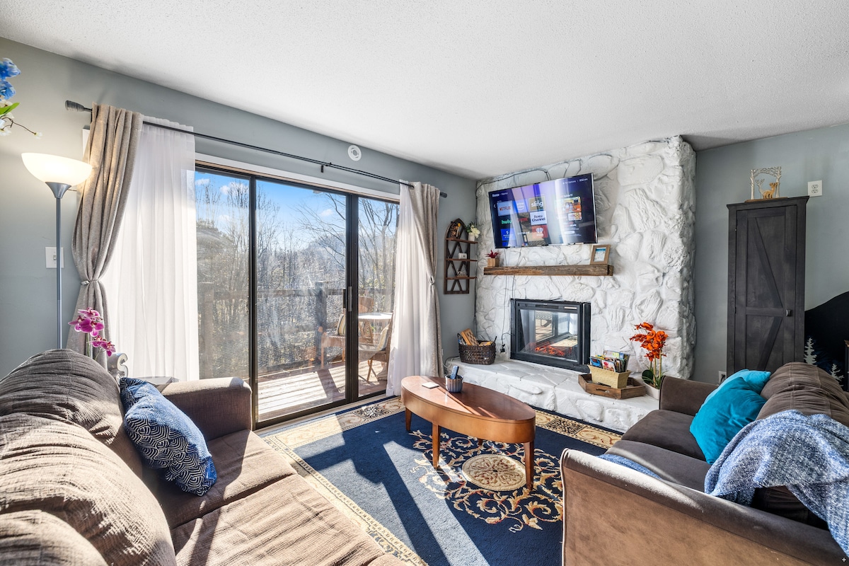 Ubicada en los imponentes árboles y las vistas panorámicas de las hermosas Montañas Humeantes, esta casa de vacaciones en el segundo piso es el lugar perfecto para tu tranquilo refugio en la montaña y a solo 20 millas de Dollywood. Este condominio completamente renovado de estilo de mediados de siglo tiene 1 dormitorio, 1 baño y un dormitorio loft, un balcón envolvente privado para disfrutar de las vistas y una chimenea de leña para que te acurruques al lado. El lugar perfecto para escapar del ajetreo y el ajetreo y realmente relajarse y relajarse.