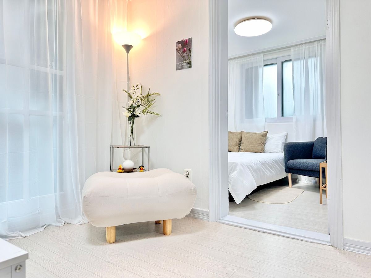 Solo 30 segundos. 1er piso*Acogedor*Hongdae Stn. 3Room4Bed.