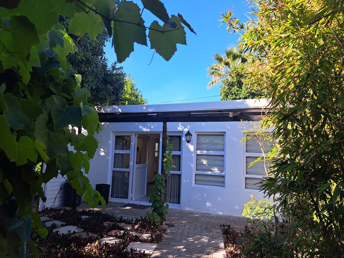 Respira la calma de esta suite iluminada por el sol y enmarcada en el jardín, un espacio sereno y contemporáneo diseñado para descansar y renovarse. Despiértate con el canto de los pájaros, toma café con luz moteada a través de los árboles y luego pasea por la playa, los lugares para practicar surf o las cafeterías cercanas. A pocos minutos de la universidad y las tiendas, pero a un mundo de distancia en sensación. Diseñado con un toque contemporáneo, es un espacio para relajarse, recargar energías y sentirse como en casa. Una estadía aquí no solo es conveniente, es una pequeña escapada
