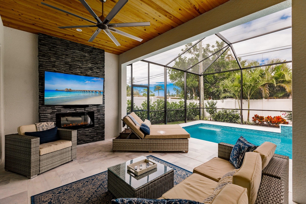 Diviértete con toda la familia en esta elegante casa paradisíaca costera de Nápoles. Oasis tropical a pocos minutos de las playas, los restaurantes, las tiendas y el entretenimiento. Piscina climatizada/spa sin chorros, wifi, gran lanai con barbacoa y mucho más. La casa es una casa de 3 dormitorios y 2 baños totalmente renovada en estilo costero contemporáneo con pisos de baldosas, arte costero, cocina grande y mucho más. Cama tamaño king, cama queen, 2 camas completas, gran sofá modular. La casa tendrá capacidad para 6 adultos más niños. Tiene todo lo que necesitas para unas excelentes vacaciones.