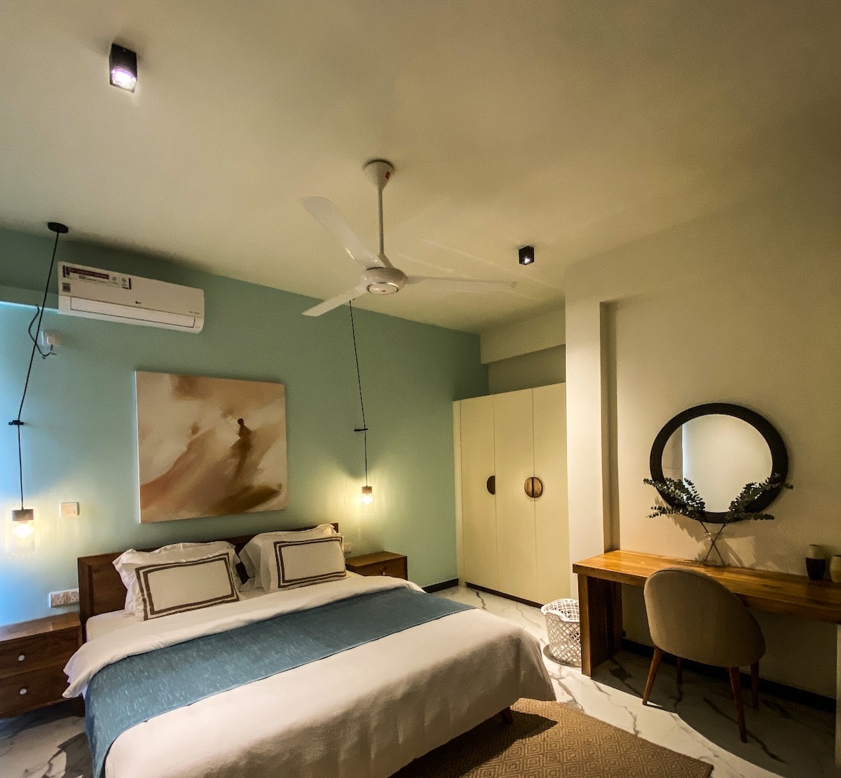 Disfruta del departamento de 1 dormitorio totalmente inteligente de Sri Lanka en TRI‑ZEN Colombo. Despiértate con unas vistas impresionantes de la Torre Lotus, el horizonte de la ciudad y el mar. Relájate en un sofá cama de cuero con control remoto y controla las cortinas motorizadas y la música al alcance de tu mano. Con muebles de diseño, una chimenea interior con tecnología ultravioleta de purificación de aire y un televisor inteligente UHD 4K de 55 pulgadas, este departamento ultramoderno es perfecto para parejas, viajeros de negocios o cualquier persona que busque comodidad futurista en el corazón de Colombo.