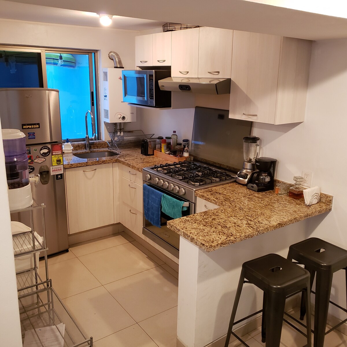 ¡Departamento muy bonito! Recién remodelado y súper bien ubicado en la Roma Sur. Cerca de cafeterías, taquerías, restaurantes y centro comercial. Tienda de conveniencia abierta 24 horas justo en la esquina. A dos cuadras del metro y metrobús a 10 minutos caminando. Ideal para parejas y para viajes de trabajo. Red de Wi-fi exclusiva para el alojamiento. Totalmente equipado. 2 recámaras, 1 baño.