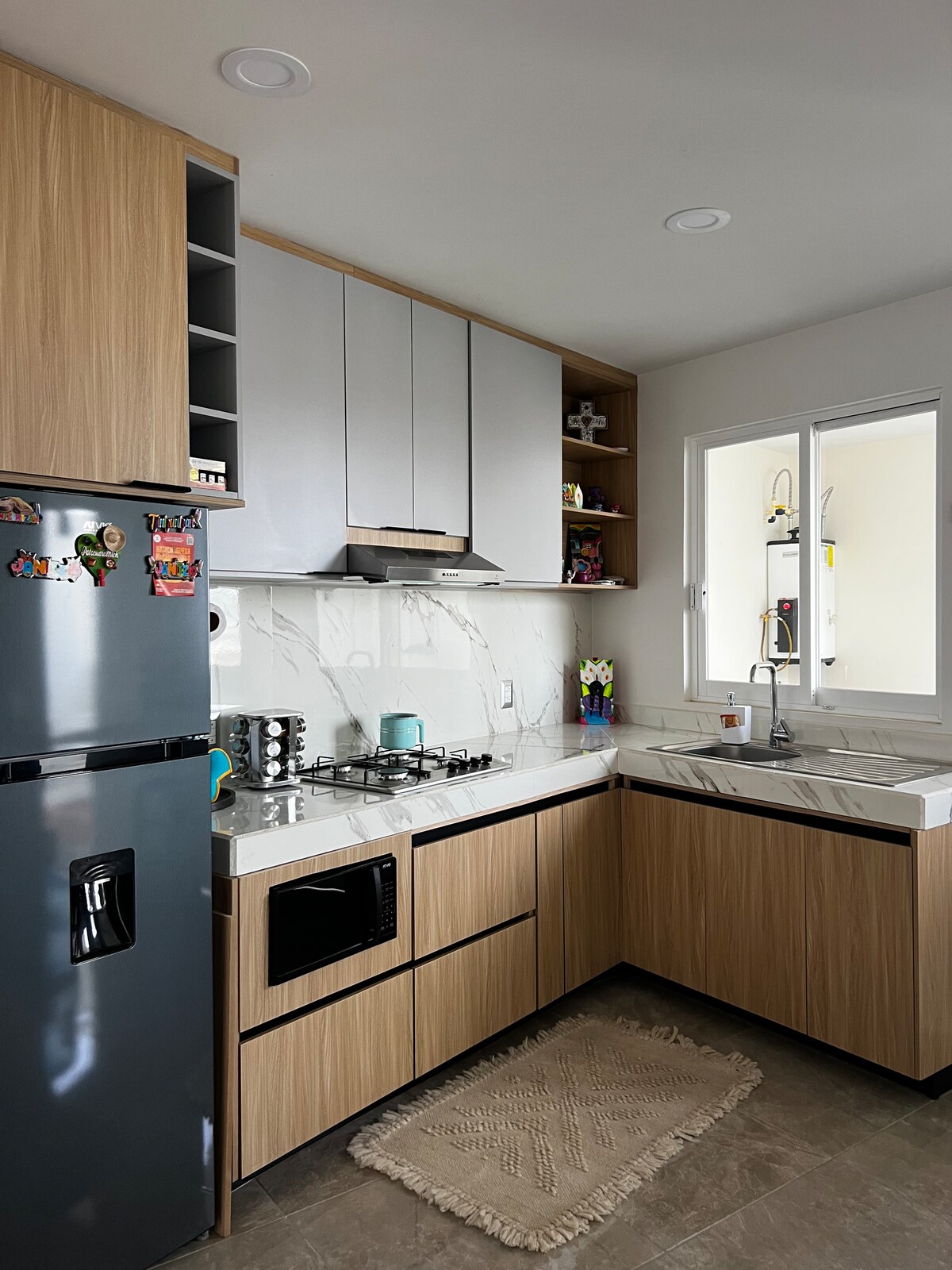 Cómodo y nuevo departamento “gusgo gusgo” a solo 5 min. del centro y 16 min. al muelle general, EN COCHE. El ambiente que rodea el edificio es tranquilo, rodeado por naturaleza, cercano al libramiento que es la avenida principal de la ciudad. También cuenta con roof Garden con hermosas vistas al lago y a la ciudad. Al hospedarte con nosotros toma en cuenta que DEBERÁN PASAR POR UNA CALLE CUESTA ARRIBA Y EMPEDRADA DE APROX. 30 METROS, el resto son calles pavimentadas.